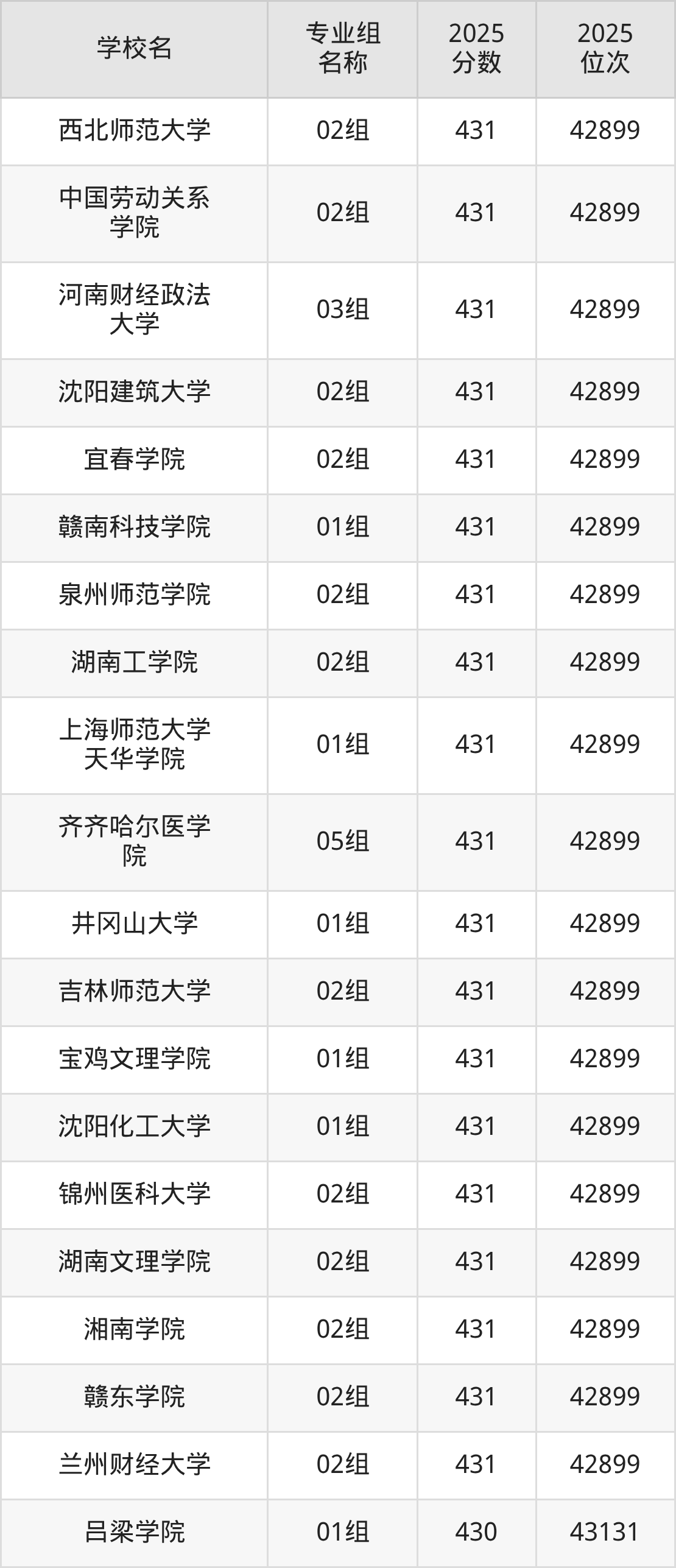 除上述院校外,432分可上的公办本科大学还有兰州石化职业技术大学(004组(藏区专项)(甘南)425分,位次22432名)、赣南师范大学(007组409分,位次75531名)。