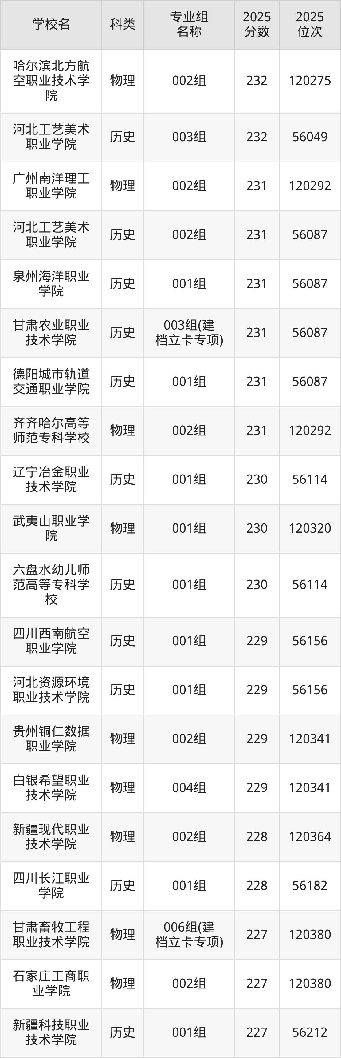 本文将收集各省232分能上的专科学校位次排名表(不含特殊招生计划、中外合作、分校区等),以供2026届考生参考。
