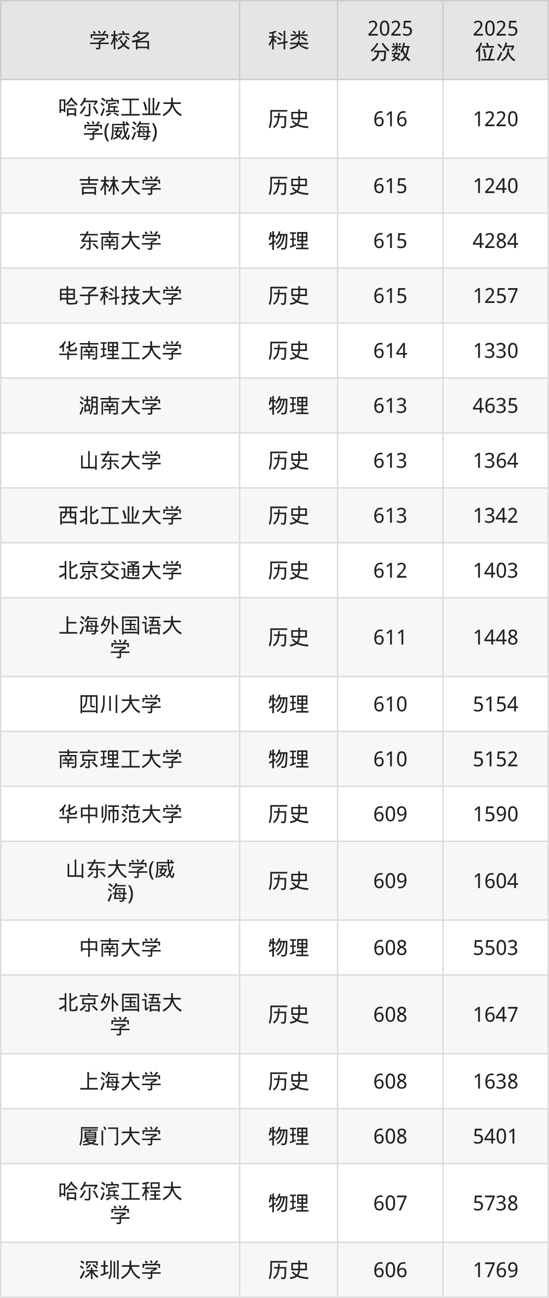 本文将收集各省616分能上的本科大学位次排名表(不含特殊招生计划、中外合作、分校区等),以供2026届考生参考。