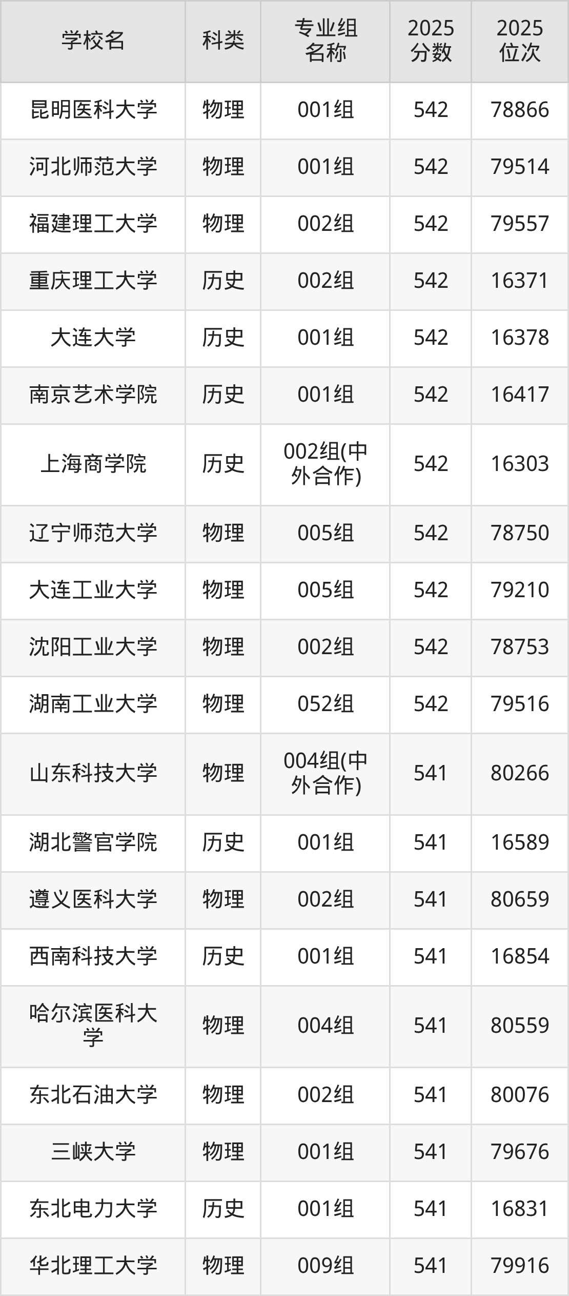 本文将收集各省542分能上的本科大学位次排名表(不含特殊招生计划、中外合作、分校区等),以供2026届考生参考。