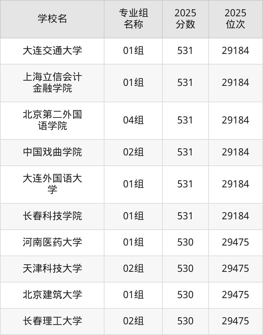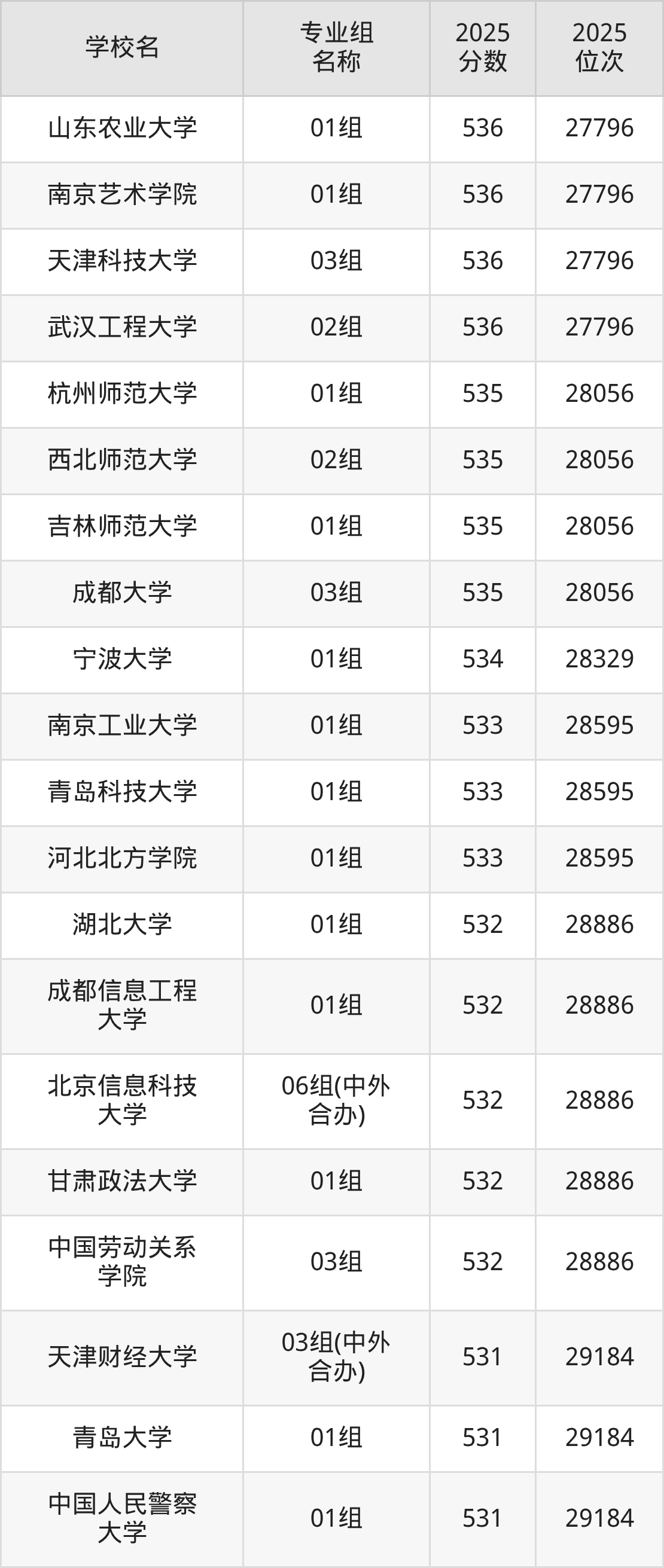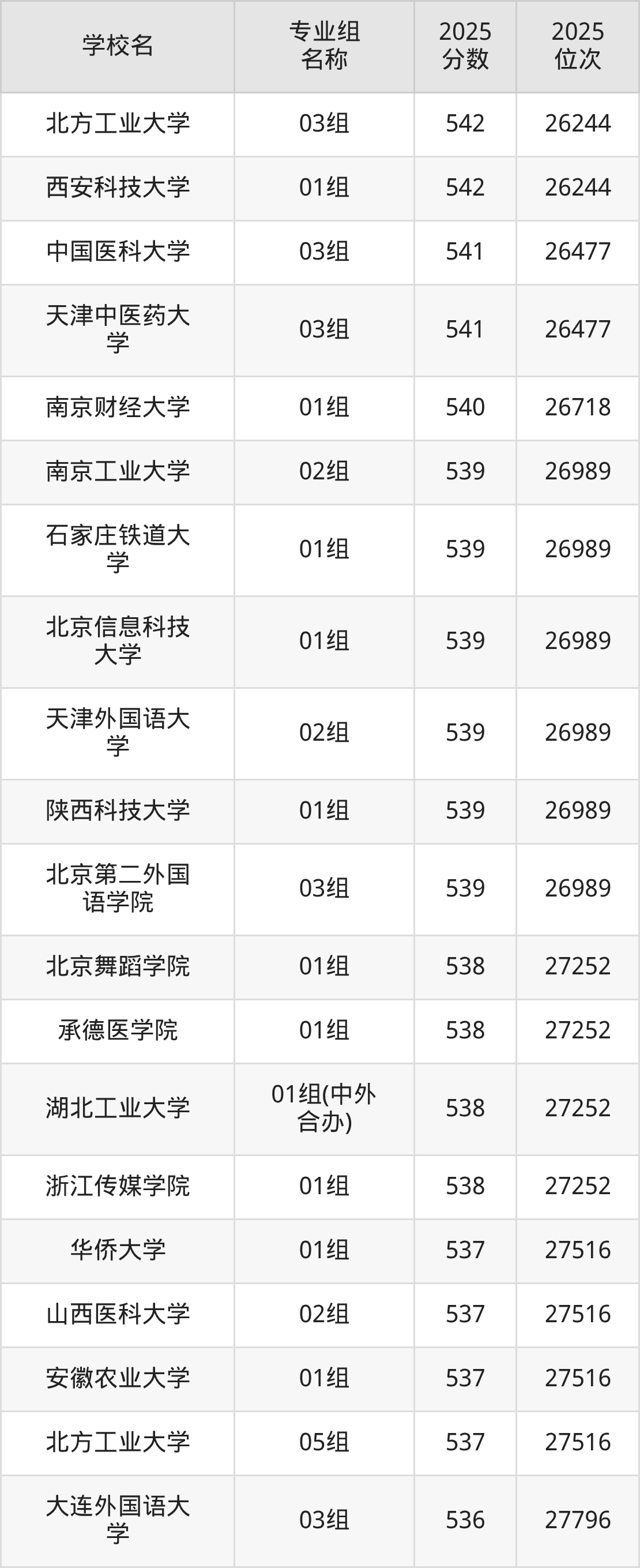 除上述院校外,542分可上的公办本科大学还有北京农学院(06组(中外合办)430分,位次53994名)、北京中医药大学(03组523分,位次31409名)。
