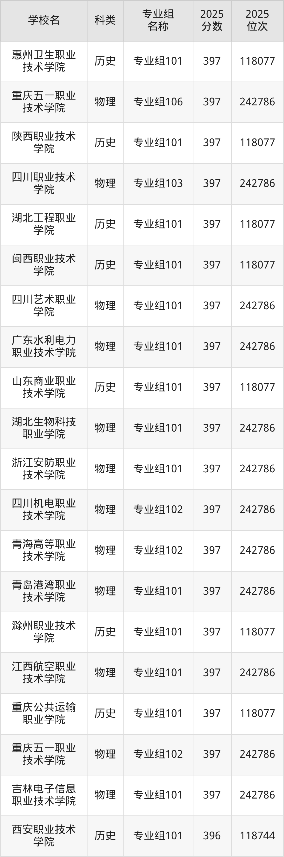 本文将收集各省397分能上的专科学校位次排名表(不含特殊招生计划、中外合作、分校区等),以供2026届考生参考。