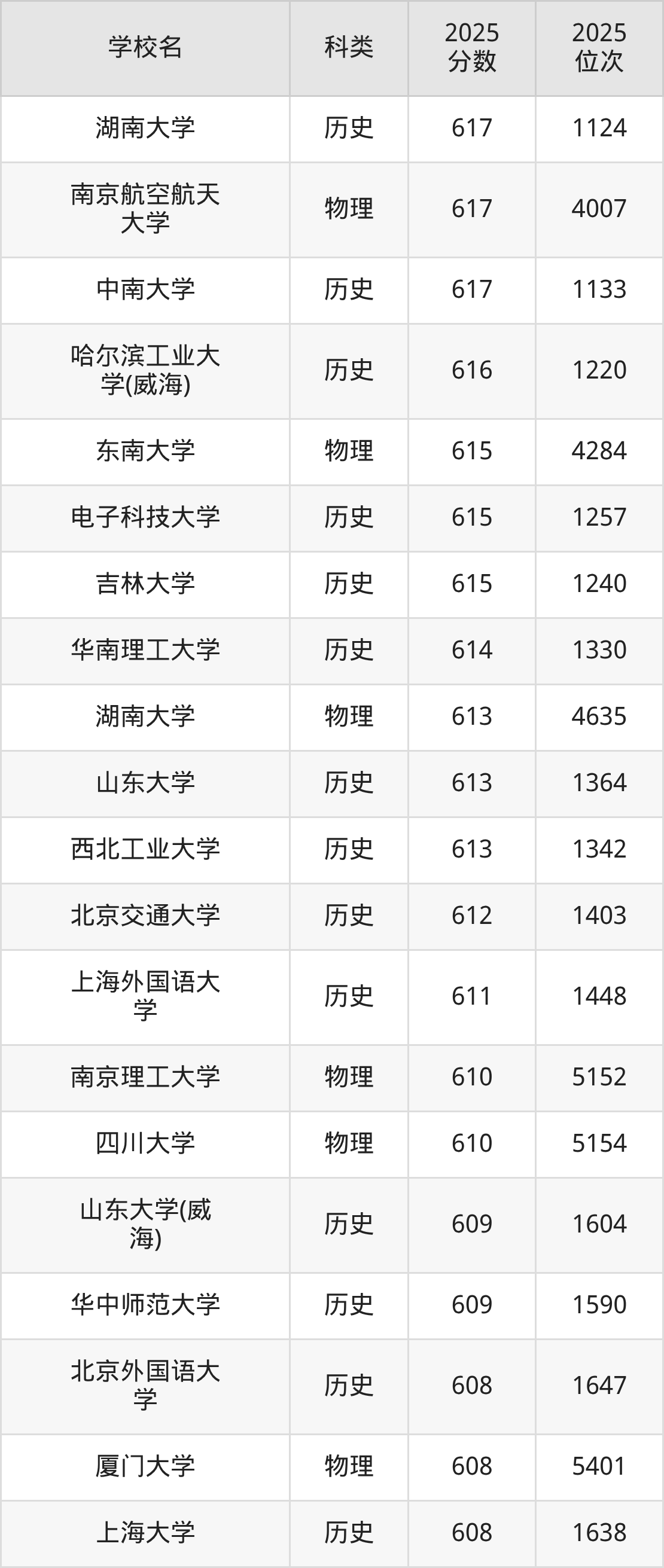 本文将收集各省617分能上的本科大学位次排名表(不含特殊招生计划、中外合作、分校区等),以供2026届考生参考。
