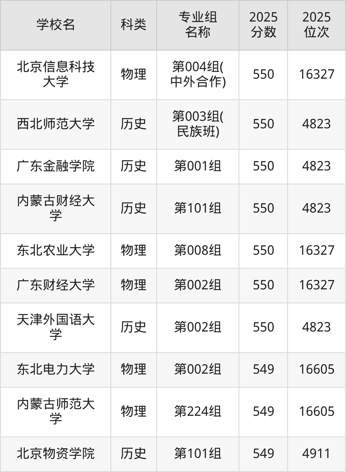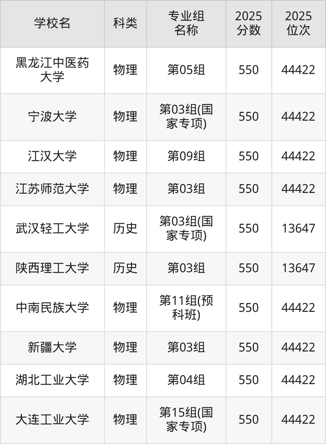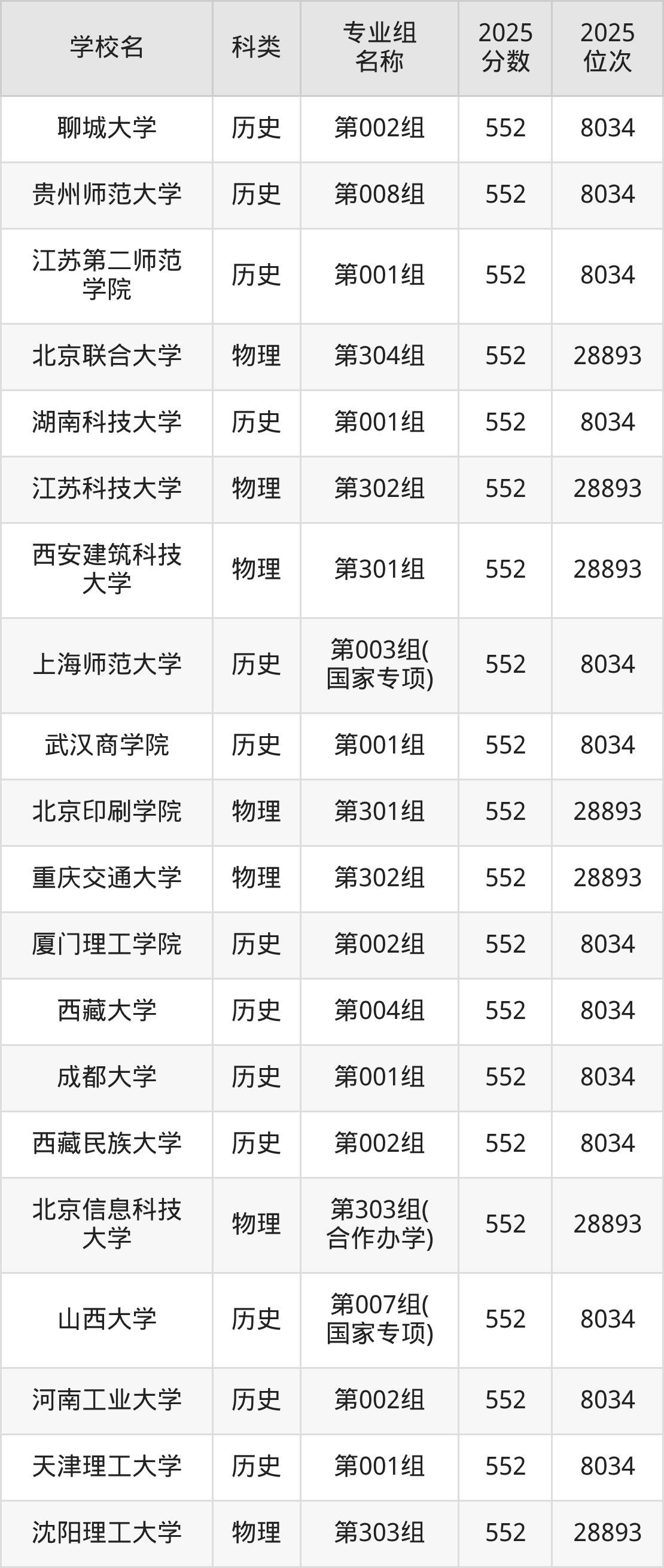 除上述院校外,552分可上的公办本科大学还有六盘水师范学院(第302组458分,位次92858名)、新疆第二医学院(第302组497分,位次62638名)。