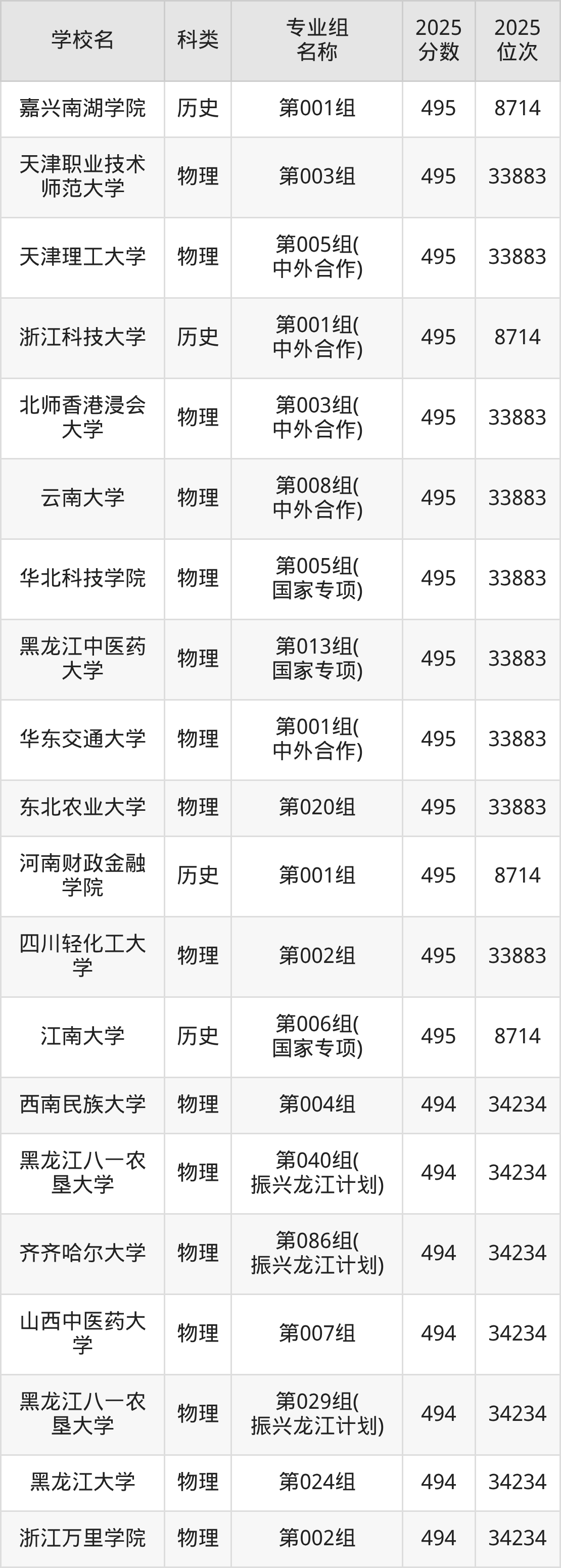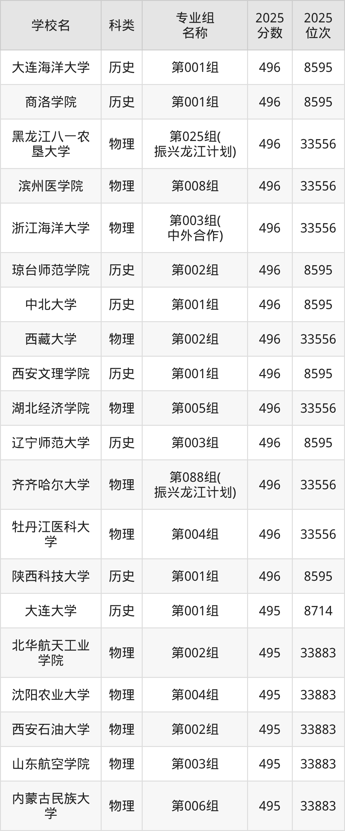 一、黑龙江496分能上的本科大学排名表