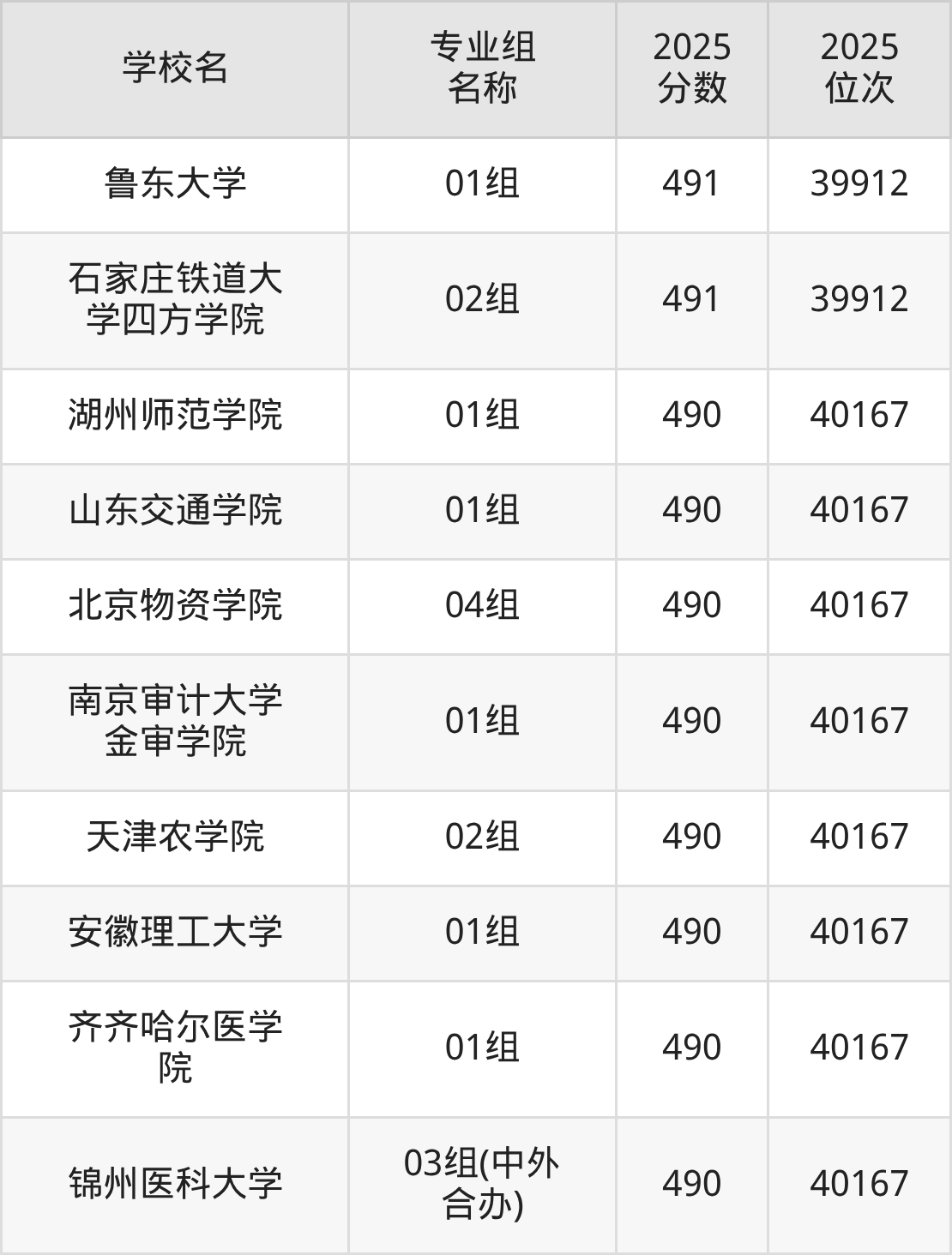 而位次最低的民办院校有吉利学院(02组)、长春电子科技学院(01组)、北京第二外国语学院中瑞酒店管理学院(01组)、长春建筑学院(02组),分数为430分,对应最低位次排名为53994名。