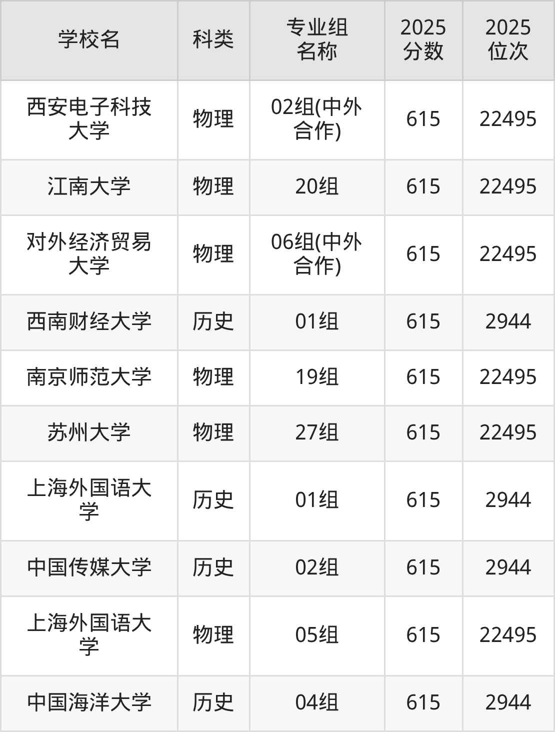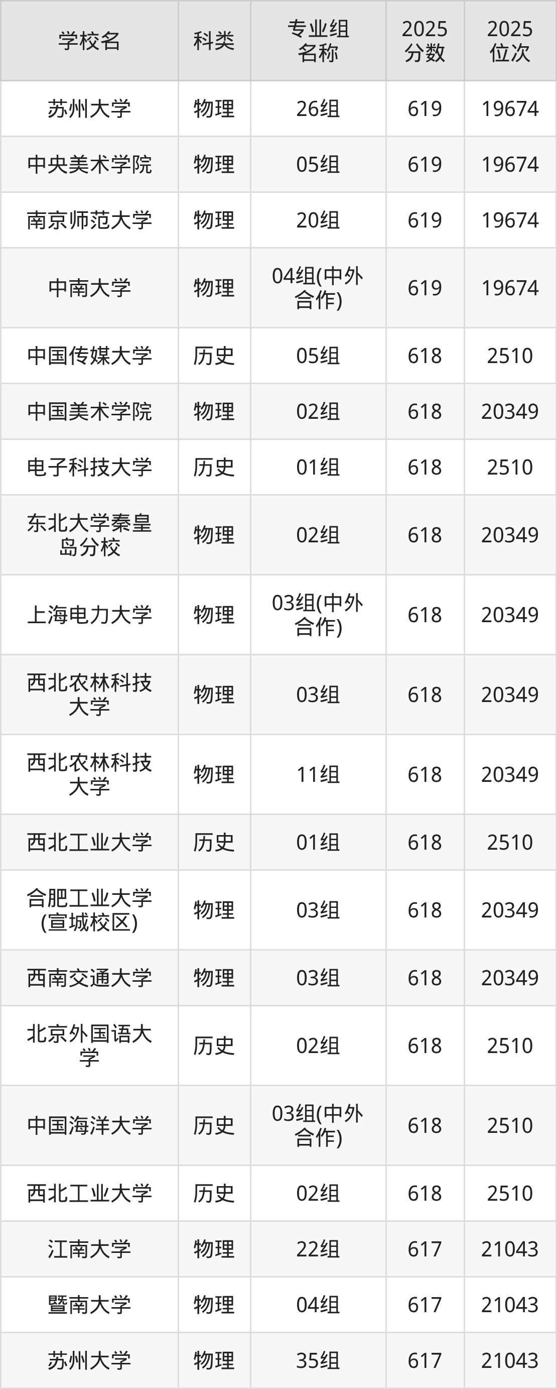 除上述院校外,619分可上的公办本科大学还有长安大学(第005组584分,位次8893名)、山西医科大学(第008组576分,位次10565名)。