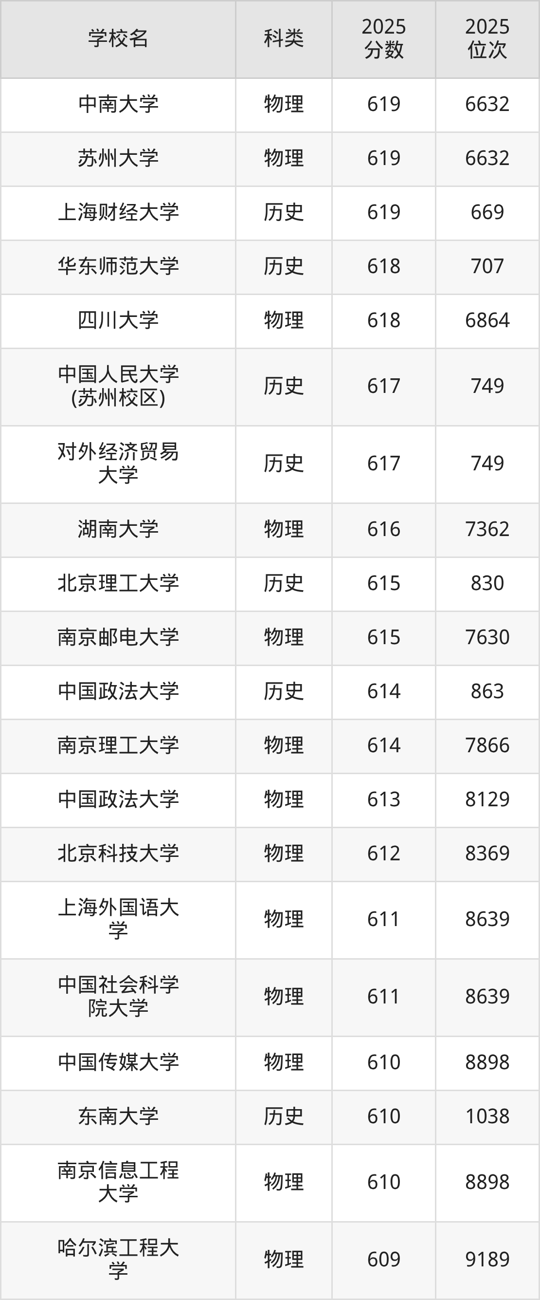 本文将收集各省619分能上的本科大学位次排名表(不含特殊招生计划、中外合作、分校区等),以供2026届考生参考。