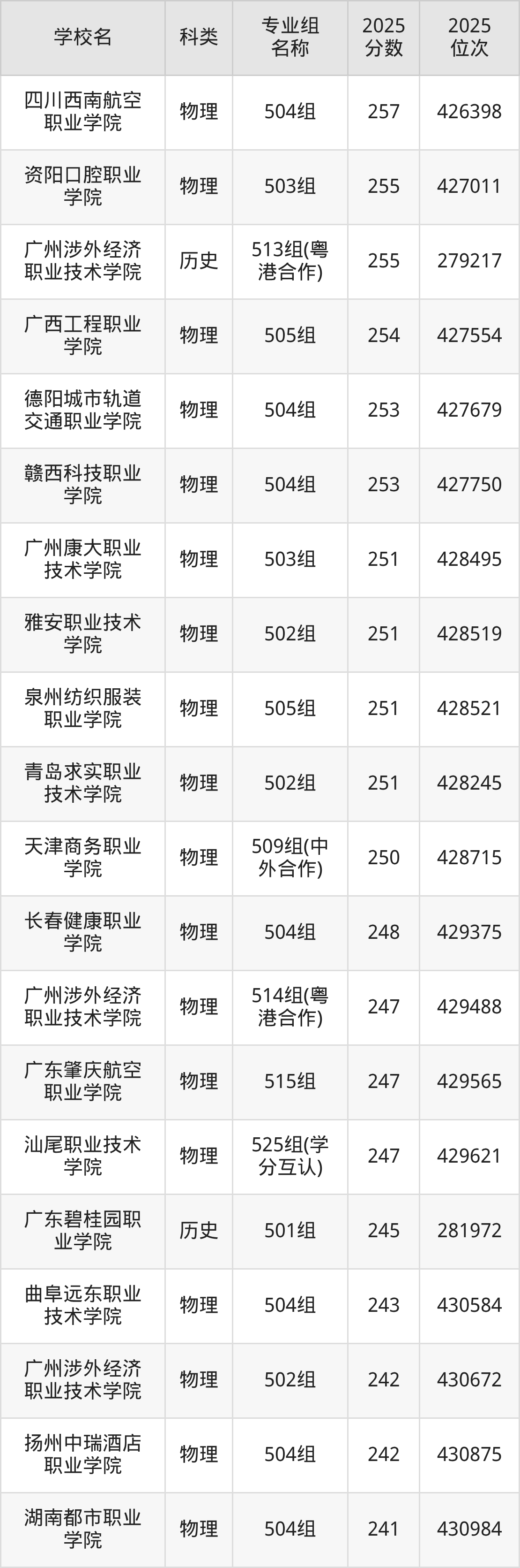 同分数公办专科学校还有广东南方职业学院(位次287453名)、广州东华职业学院(位次287476名)、广东亚视演艺职业学院(位次287466名)等,适合省排名在28万名开外的专科生报考。