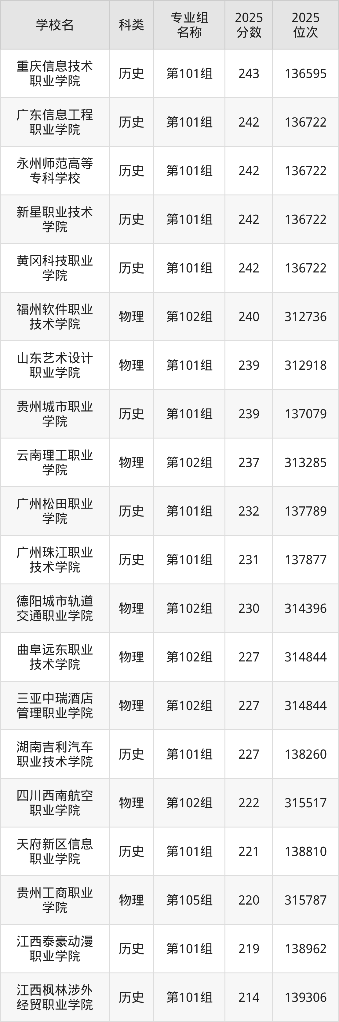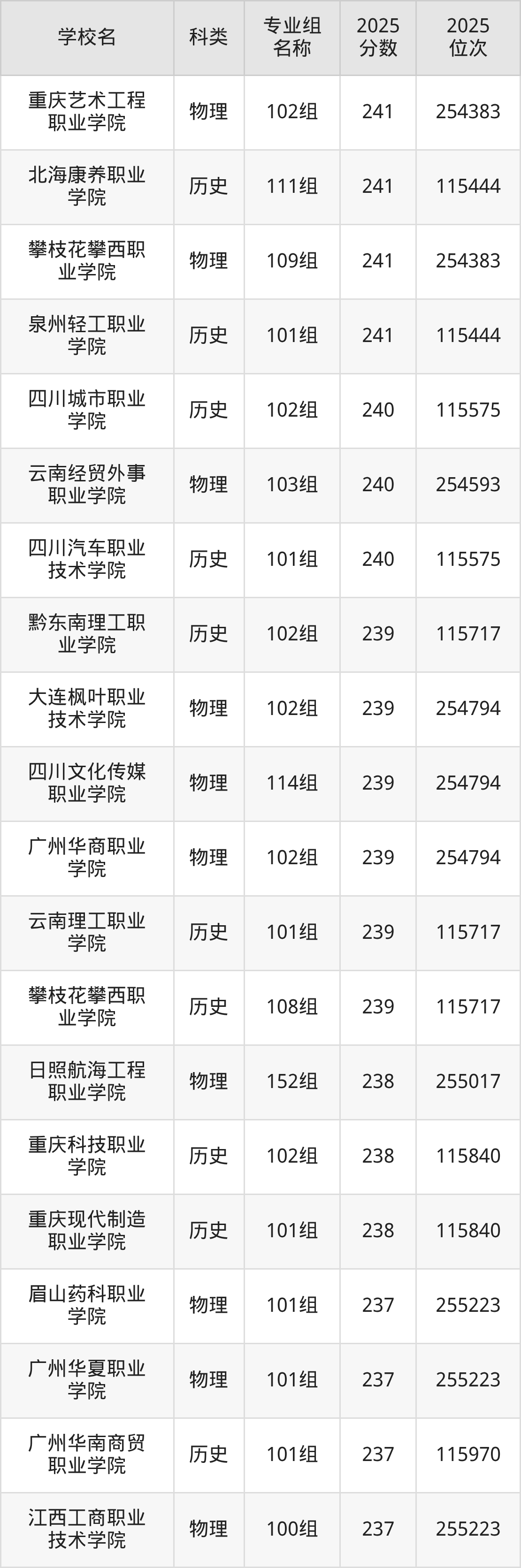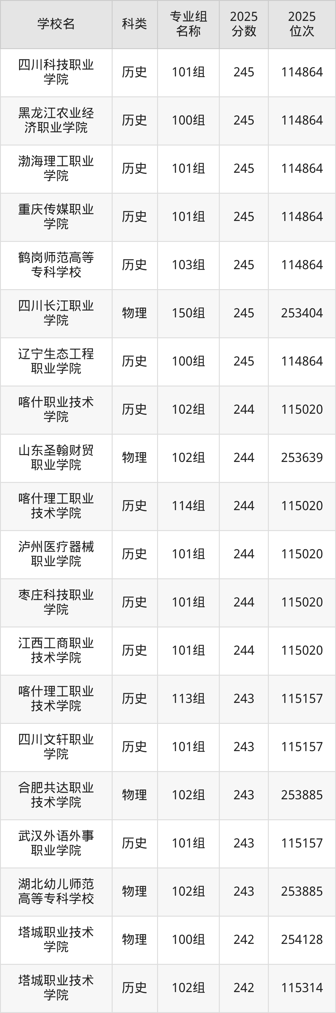 本文将收集各省245分能上的专科学校位次排名表(不含特殊招生计划、中外合作、分校区等),以供2026届考生参考。