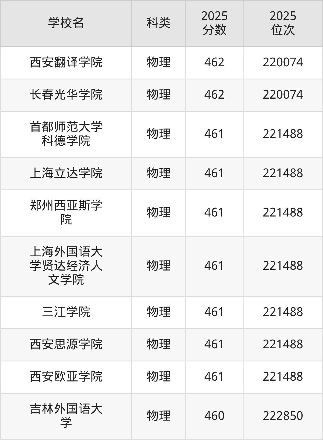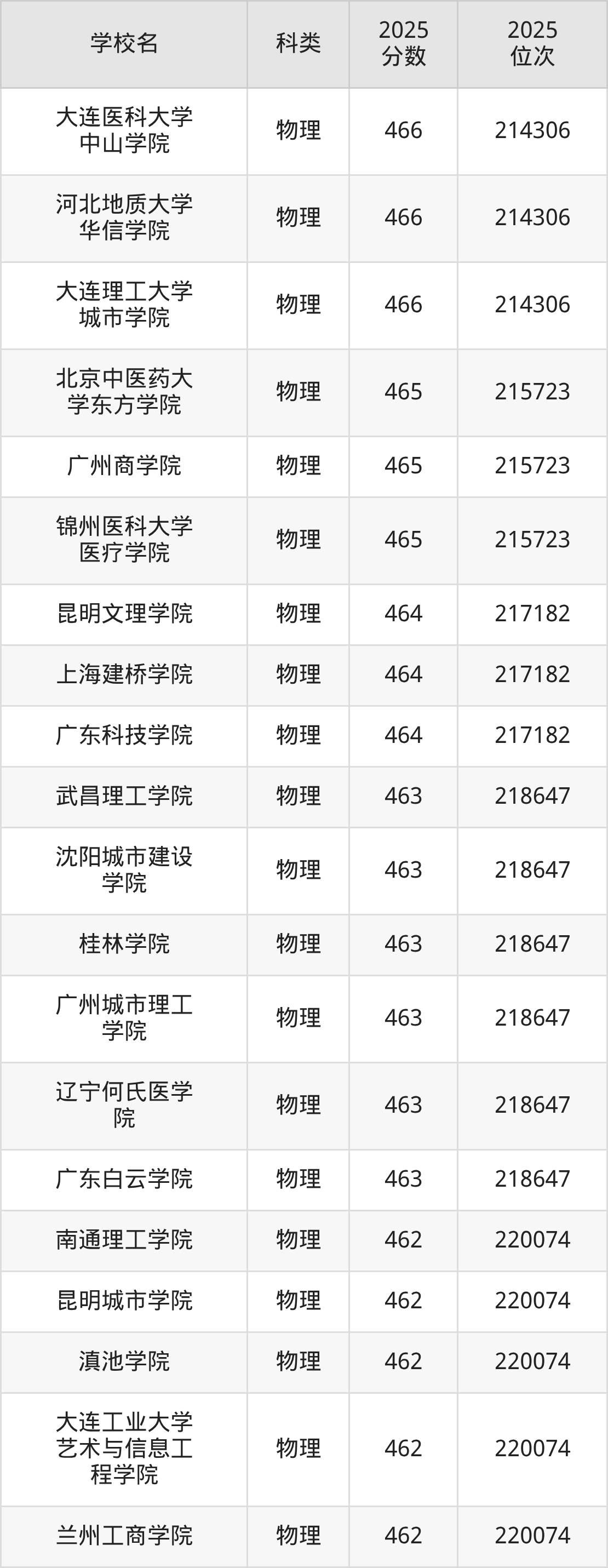 而民办大学录取位次排名最低的是河北科技学院(459分),其2025最低位次为224230名。