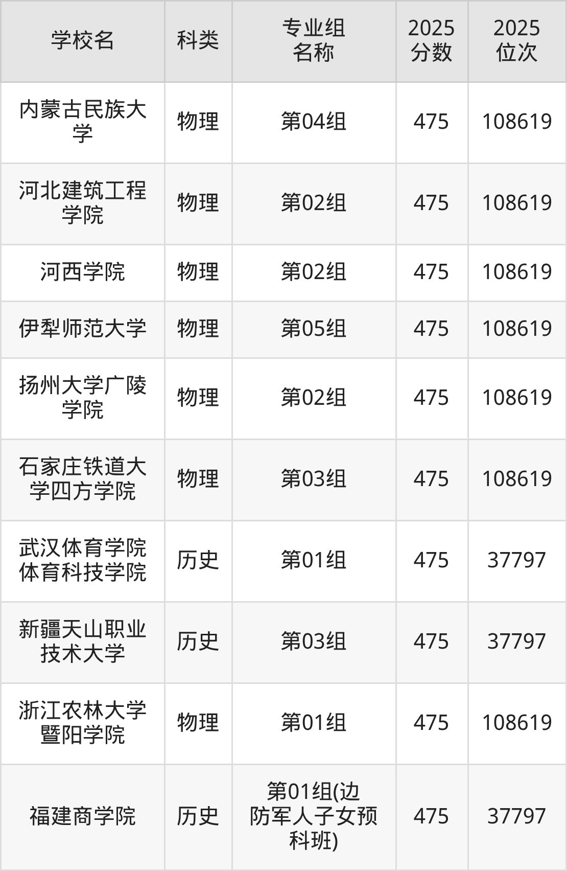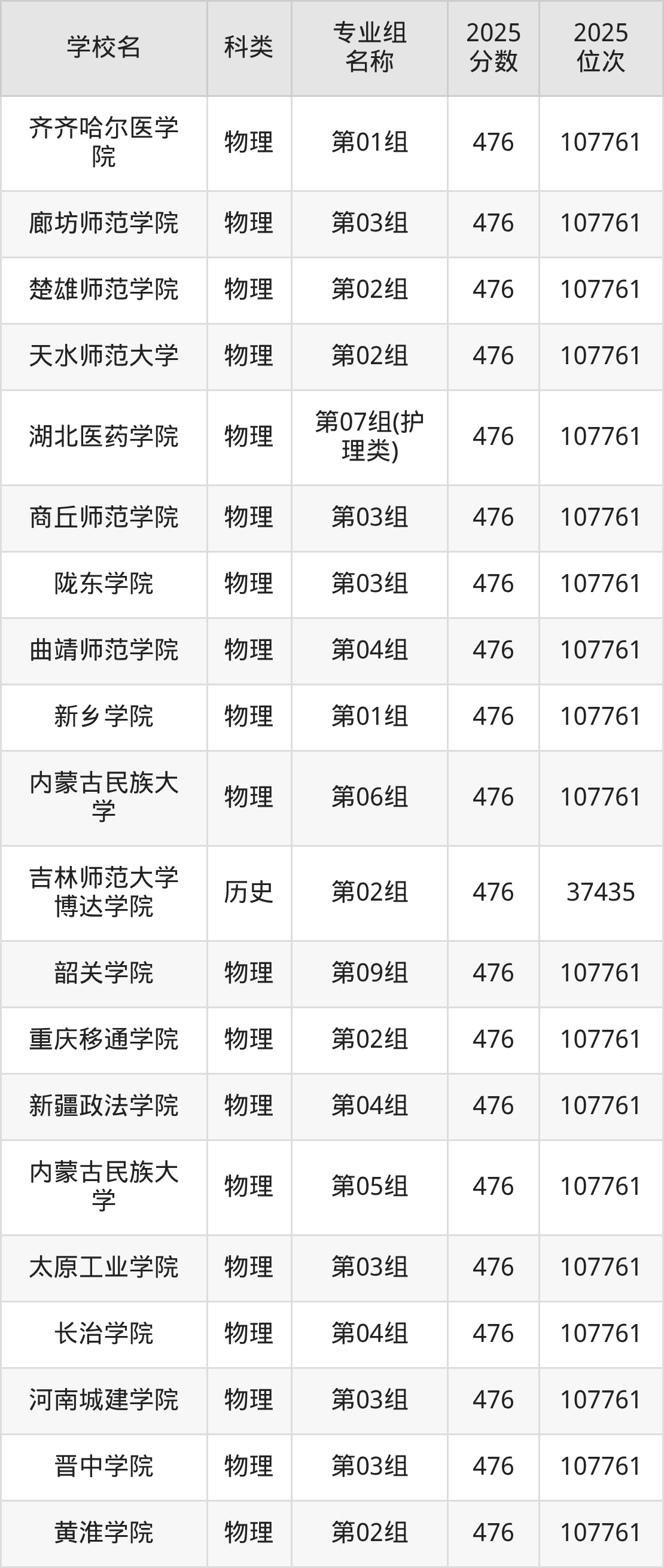 除上述院校外,476分可上的公办二本大学还有陇东学院(438分,位次35253名)、长春大学(455分,位次88620名)。