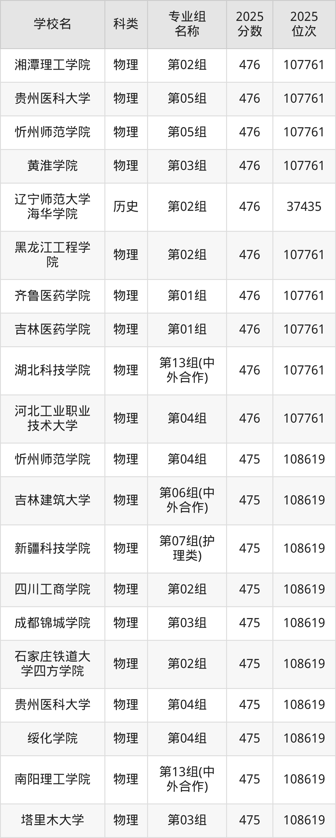 2025年河北物理类本科线为459分,476分能上的二本大学共计102所,其中公办大学录取位次排名最低的是琼台师范学院(469分),其2025最低位次为209841名。
