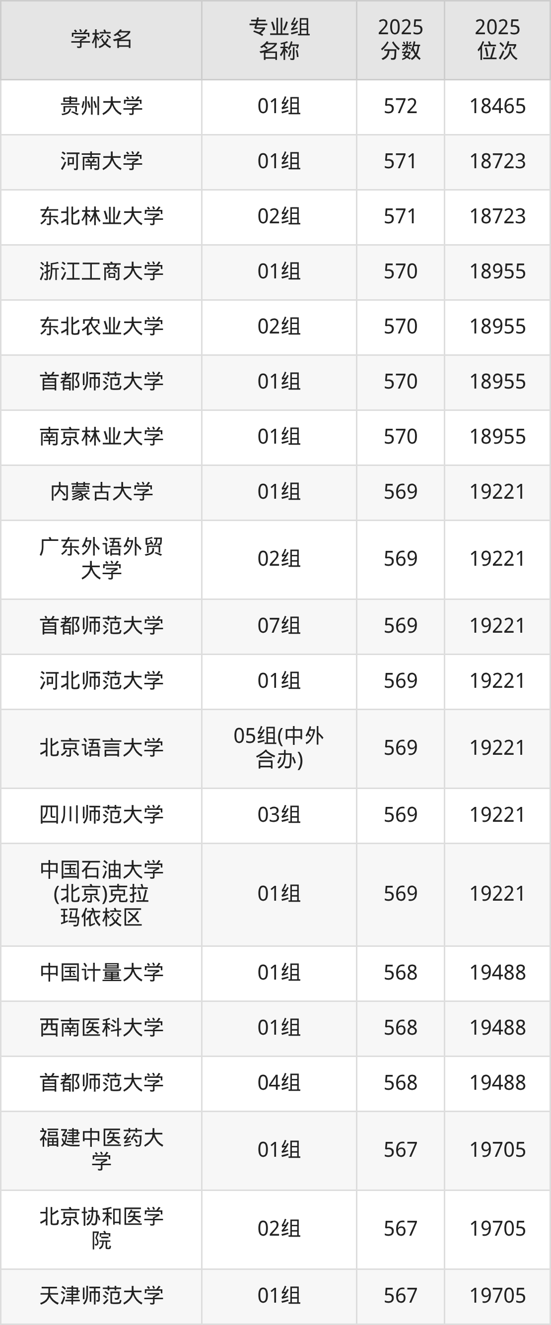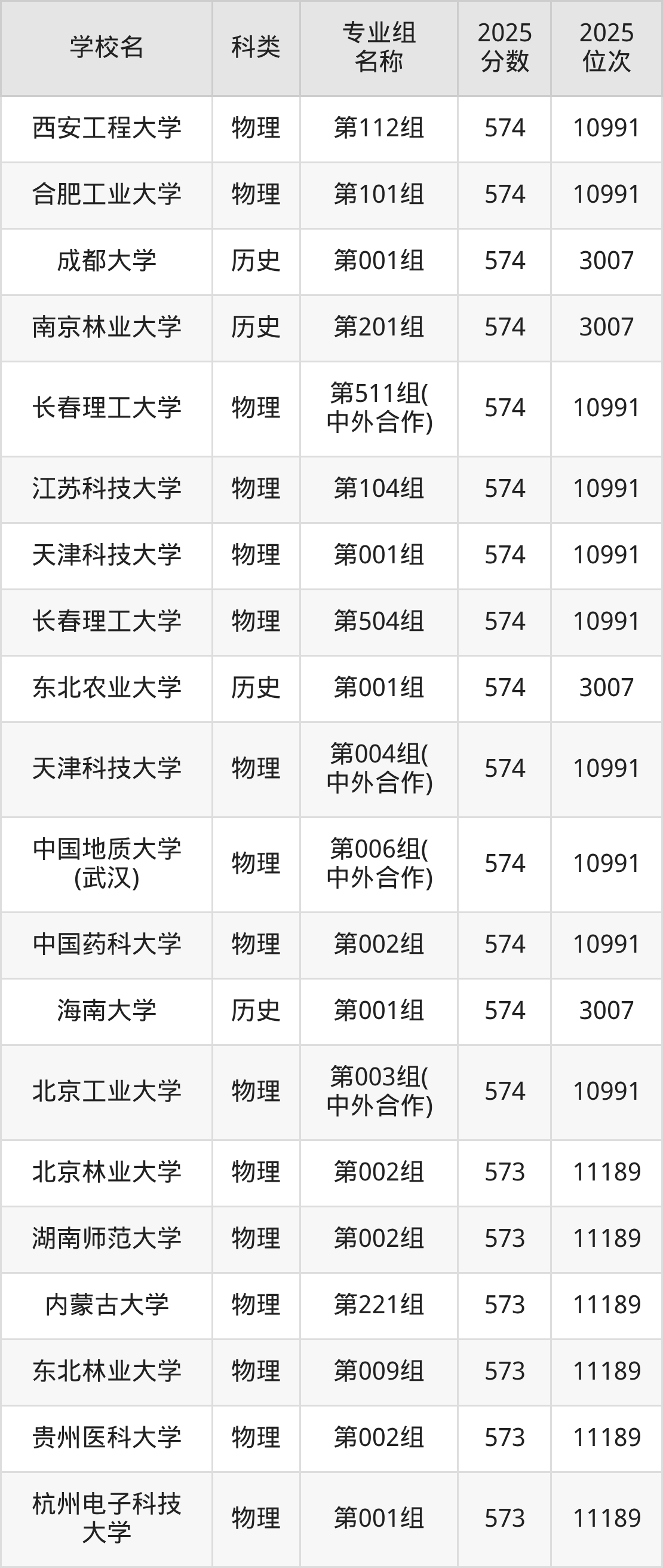 除上述院校外,576分可上的公办本科大学还有青岛理工大学(01组501分,位次37268名)、北京物资学院(01组499分,位次37822名)。