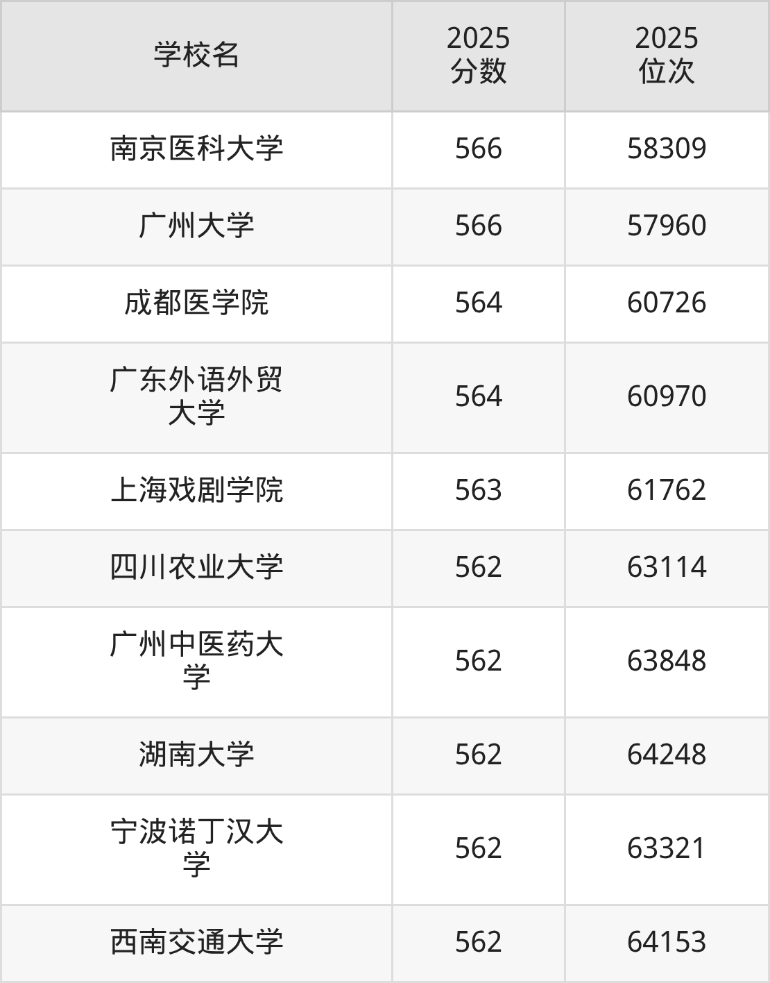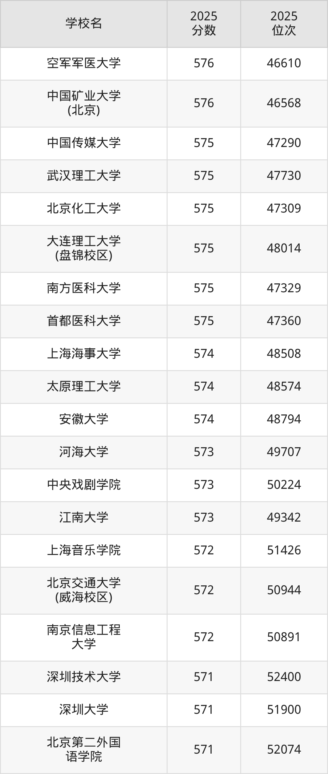 本文将收集各省576分能上的本科大学位次排名表(不含特殊招生计划、中外合作、分校区等),以供2026届考生参考。