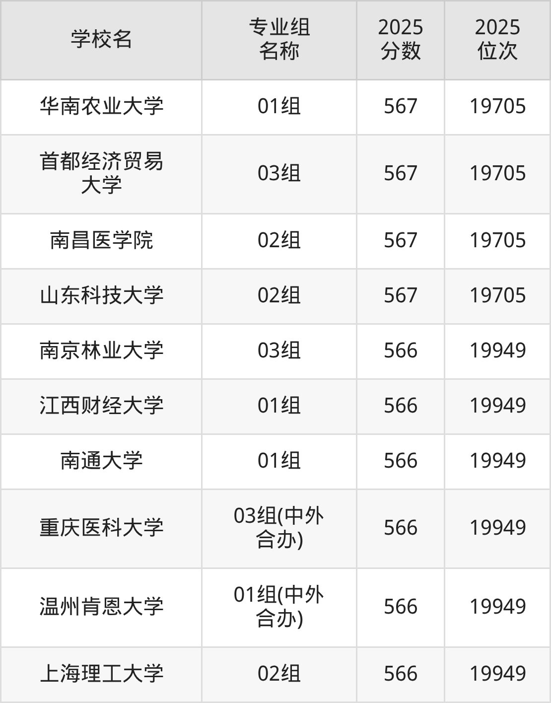 而位次最低的民办院校有吉林建筑科技学院(01组)、西安思源学院(01组)、首都师范大学科德学院(01组)、南昌工学院(01组),分数为430分,对应最低位次排名为53994名。