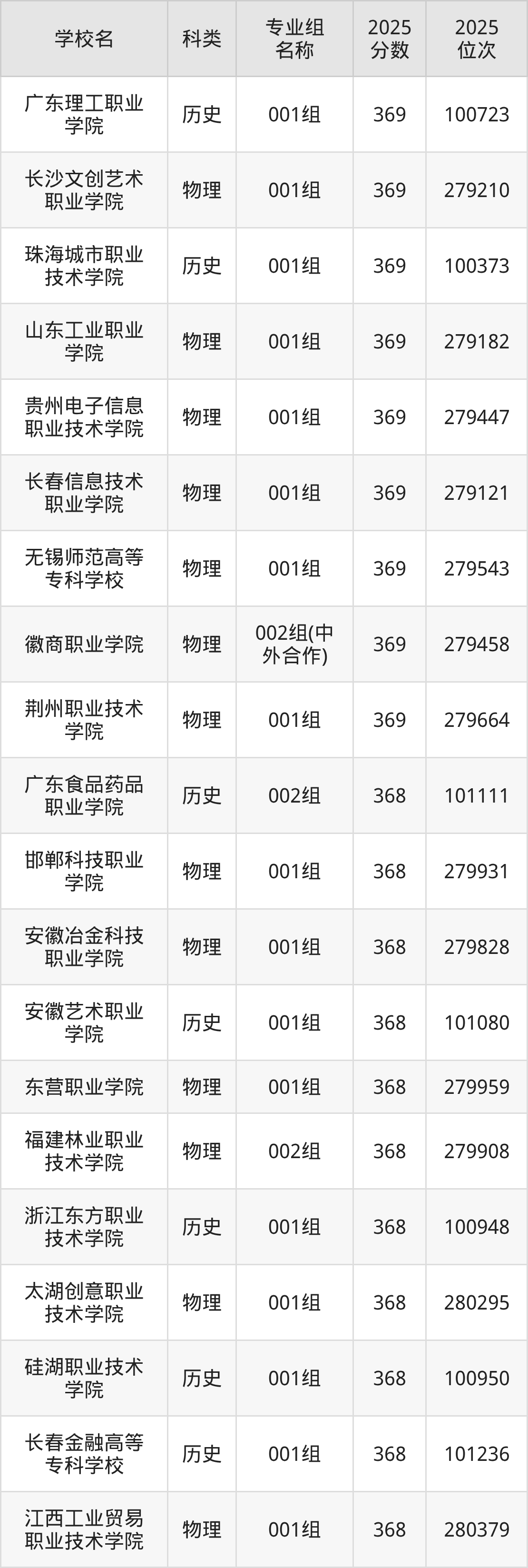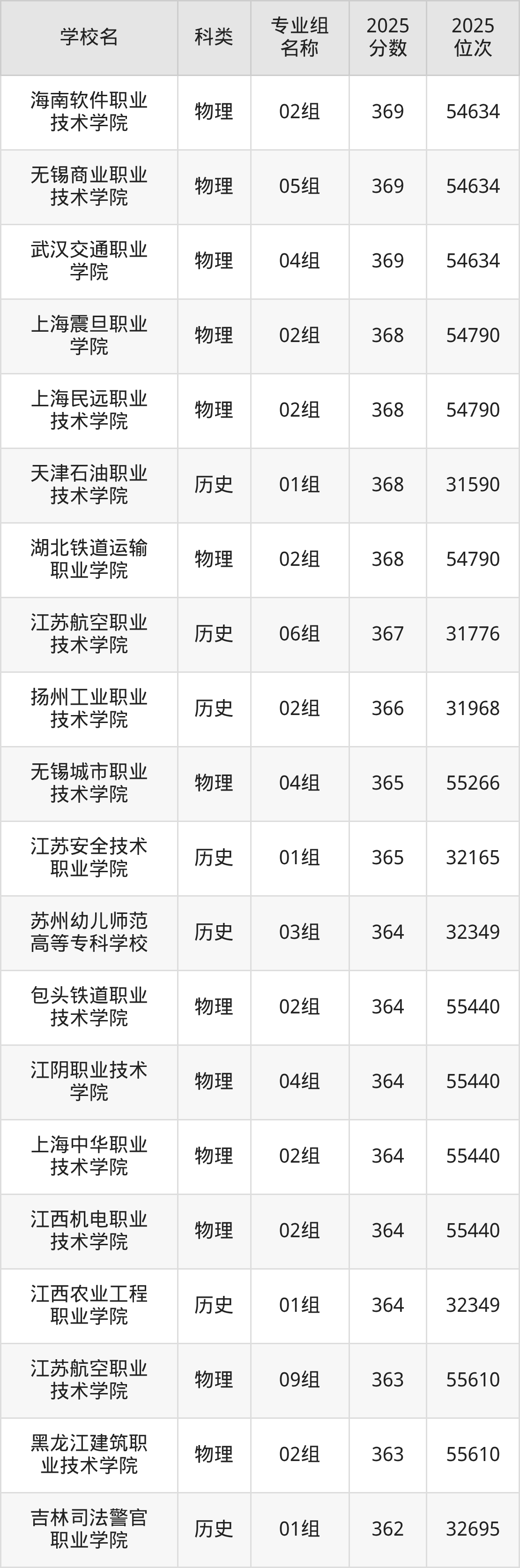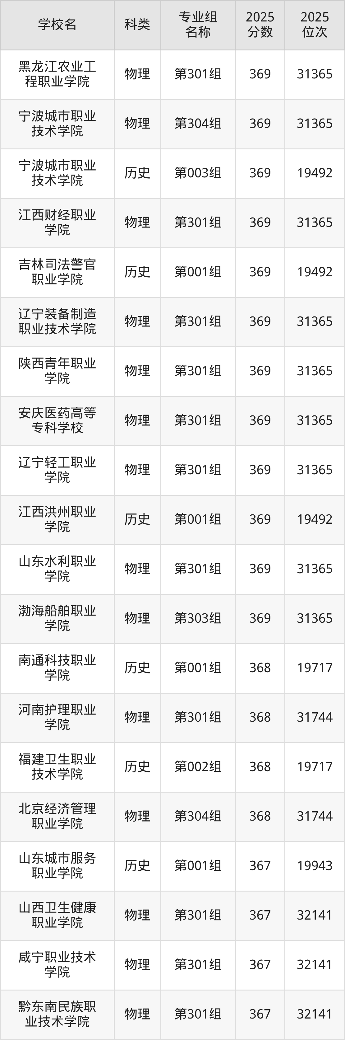 本文将收集各省369分能上的专科学校位次排名表(不含特殊招生计划、中外合作、分校区等),以供2026届考生参考。