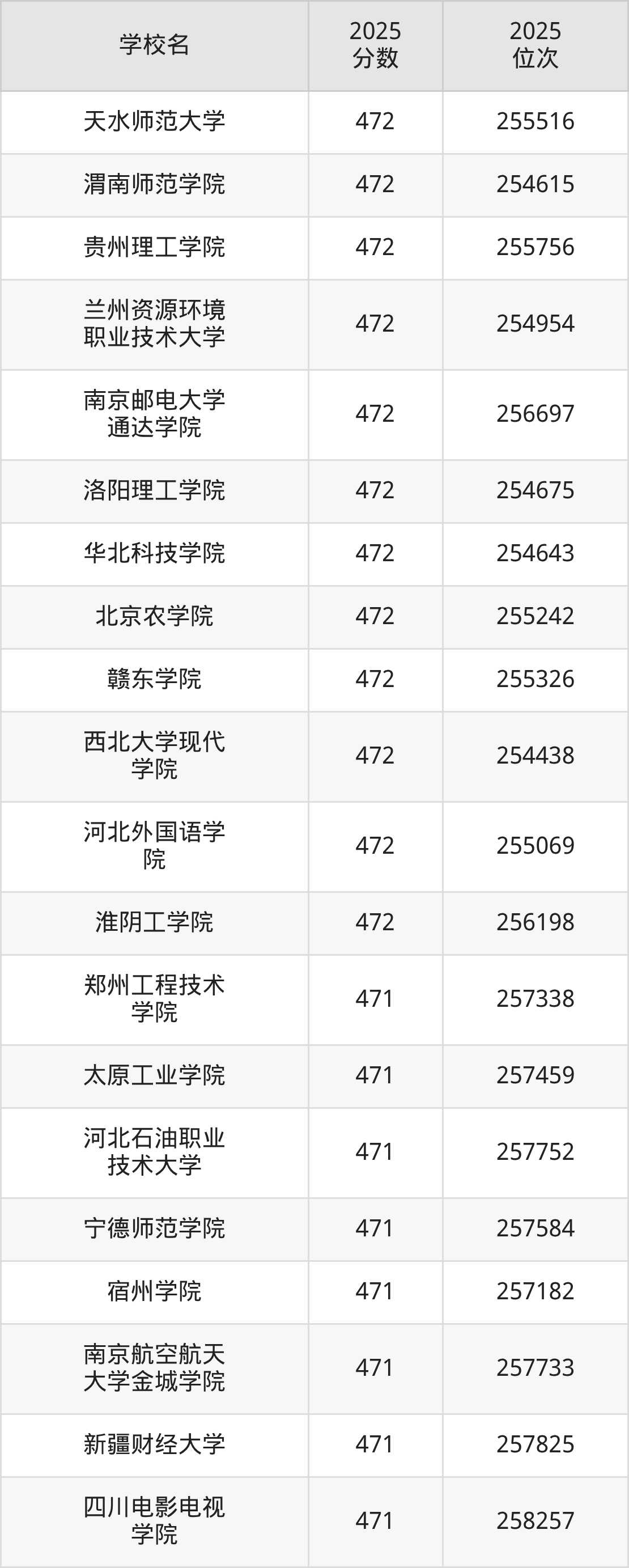 本文将收集各省472分能上的本科大学位次排名表(不含特殊招生计划、中外合作、分校区等),以供2026届考生参考。