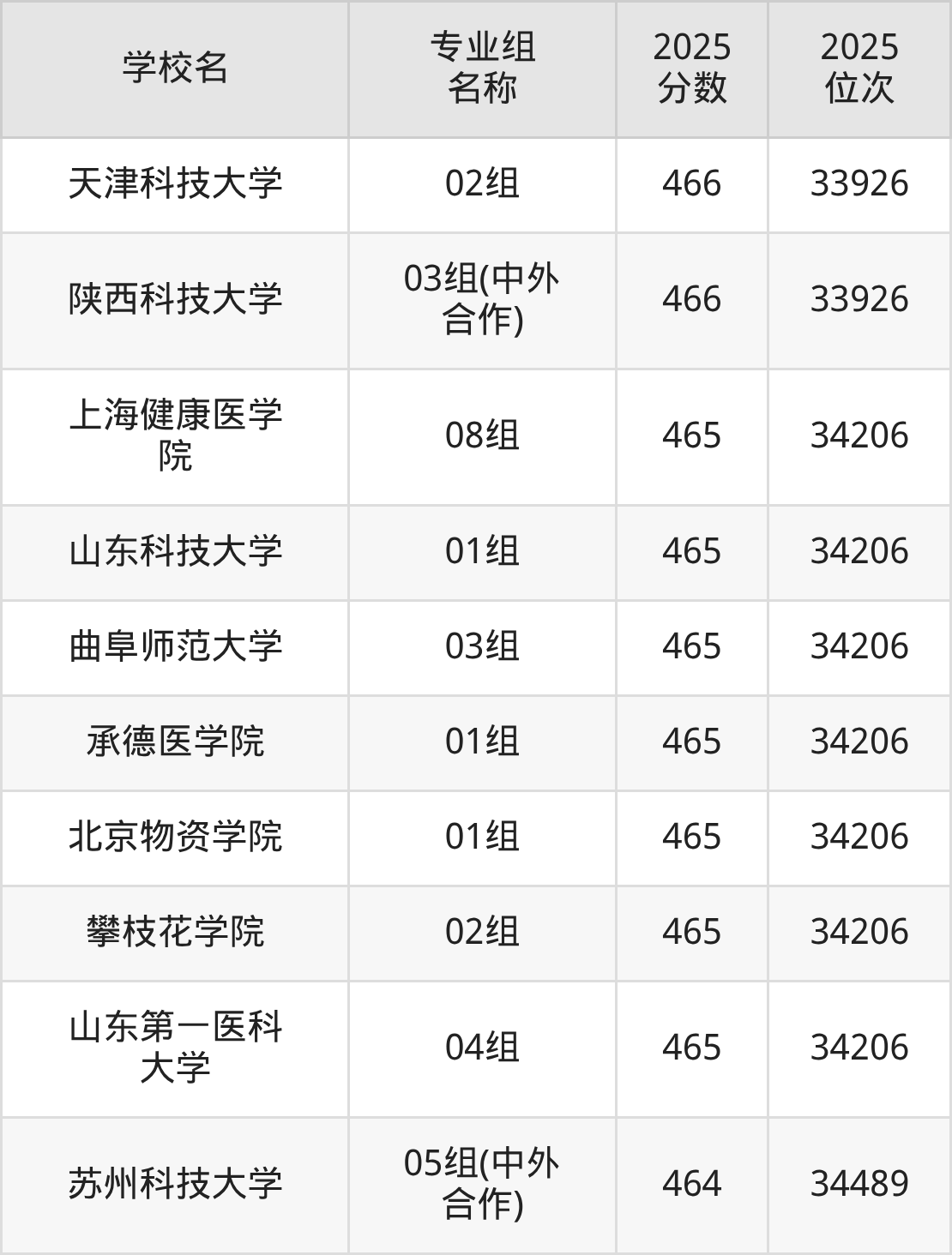 而位次最低的民办院校有昆明理工大学津桥学院(01组)、上海中侨职业技术大学(01组)、上海立达学院(03组)、上海外国语大学贤达经济人文学院(03组),分数为402分,对应最低位次排名为49276名。