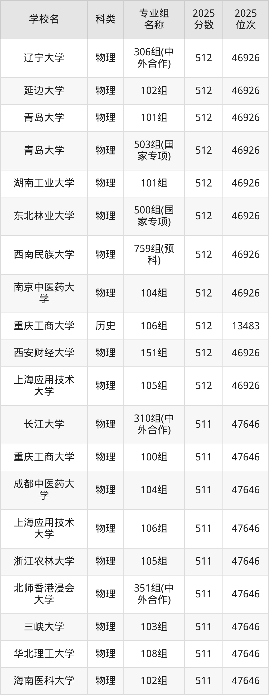 除上述院校外,512分可上的公办一本大学还有新疆财经大学(第001组463分,位次12355名)、华北理工大学(第007组511分,位次23366名)。