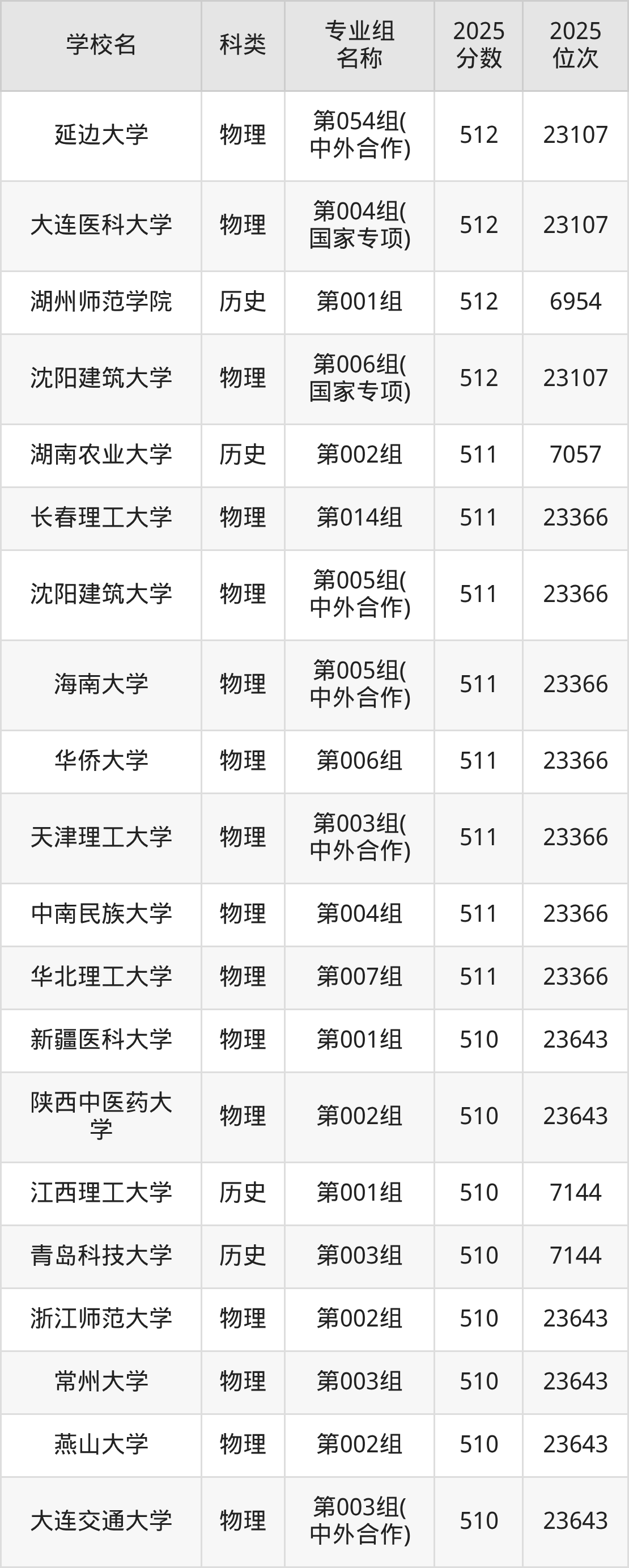 三、吉林512分能上的一本大学排名表