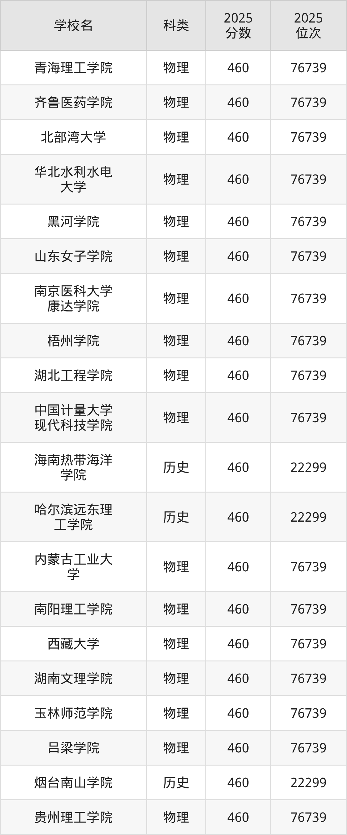 本文将收集各省460分能上的本科大学位次排名表(不含特殊招生计划、中外合作、分校区等),以供2026届考生参考。