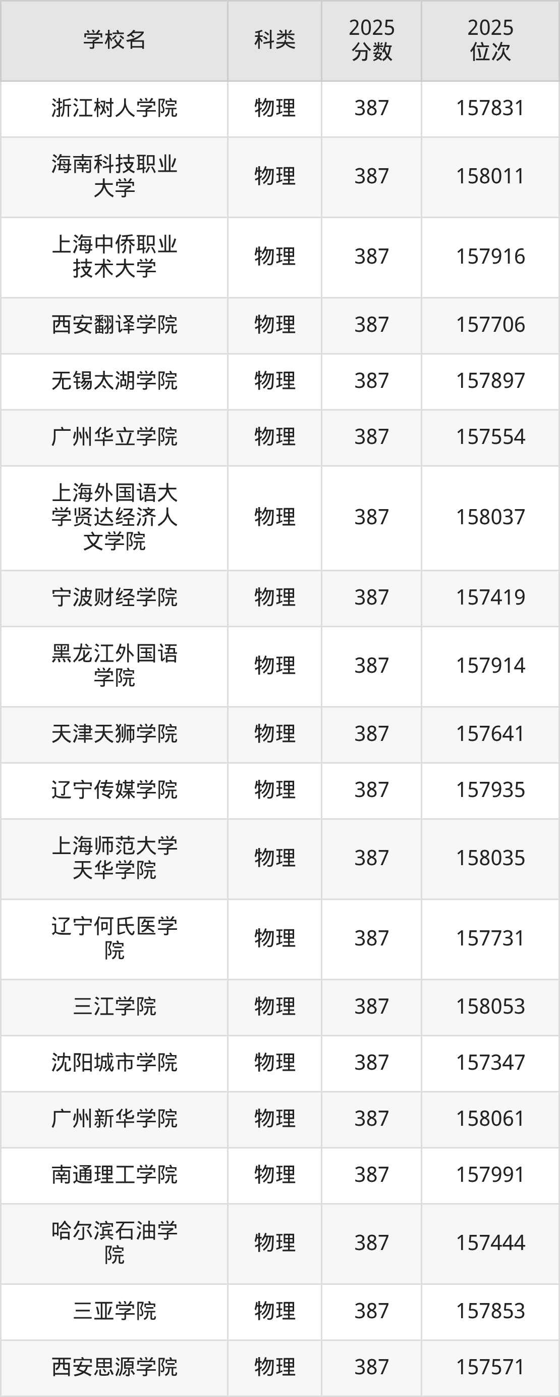 2025年黑龙江物理类本科线为360分,387分能上的本科大学共计204所,其中最低分公办院校为桂林旅游学院(第006组(中外合作)360分),对应最低位次为85313名。因此想上公办本科的考生省排名位次至少要在85313名以内。