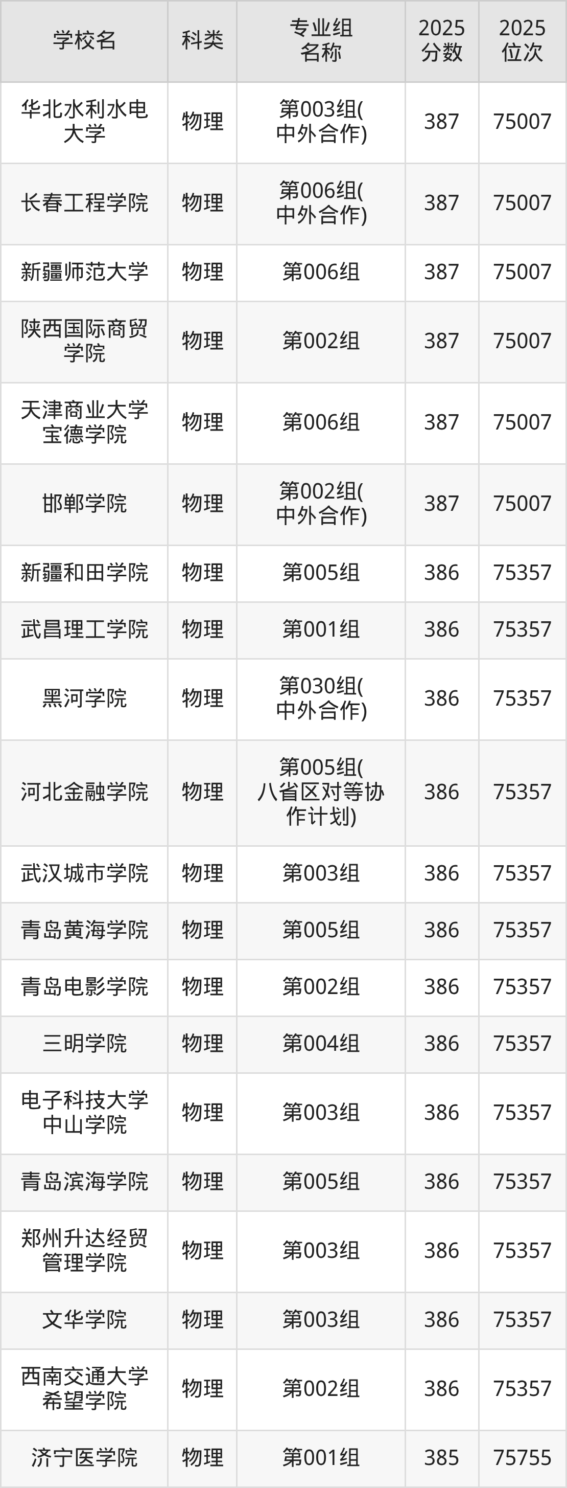 除上述院校外,387分可上的公办本科大学还有黑龙江科技大学(第008组(地方专项)375分,位次79727名)、济宁医学院(第001组385分,位次75755名)。
