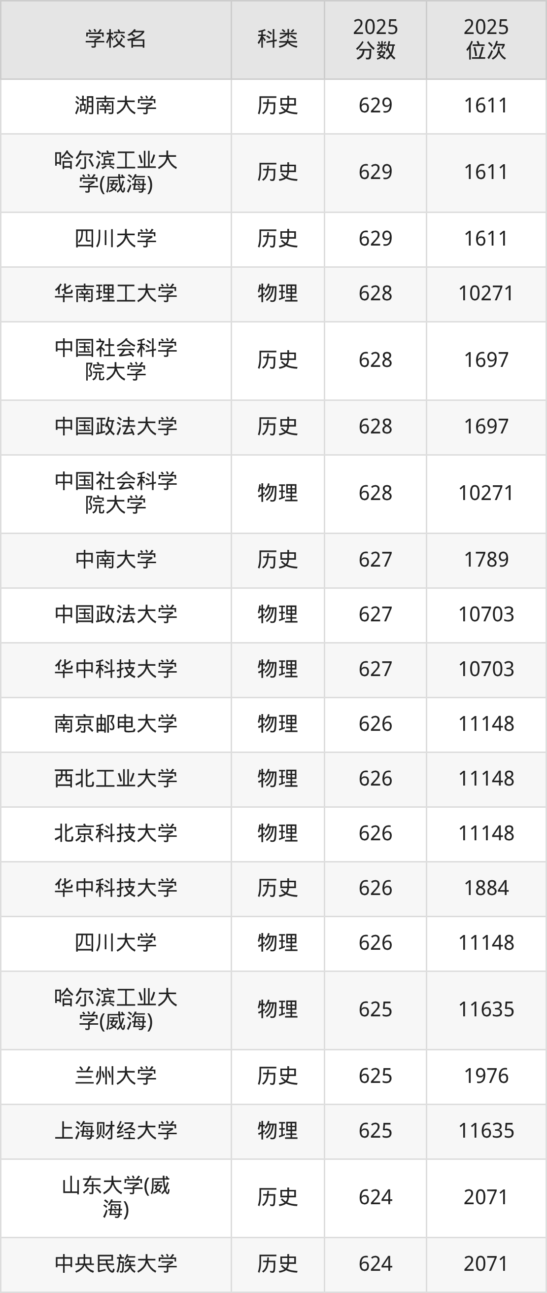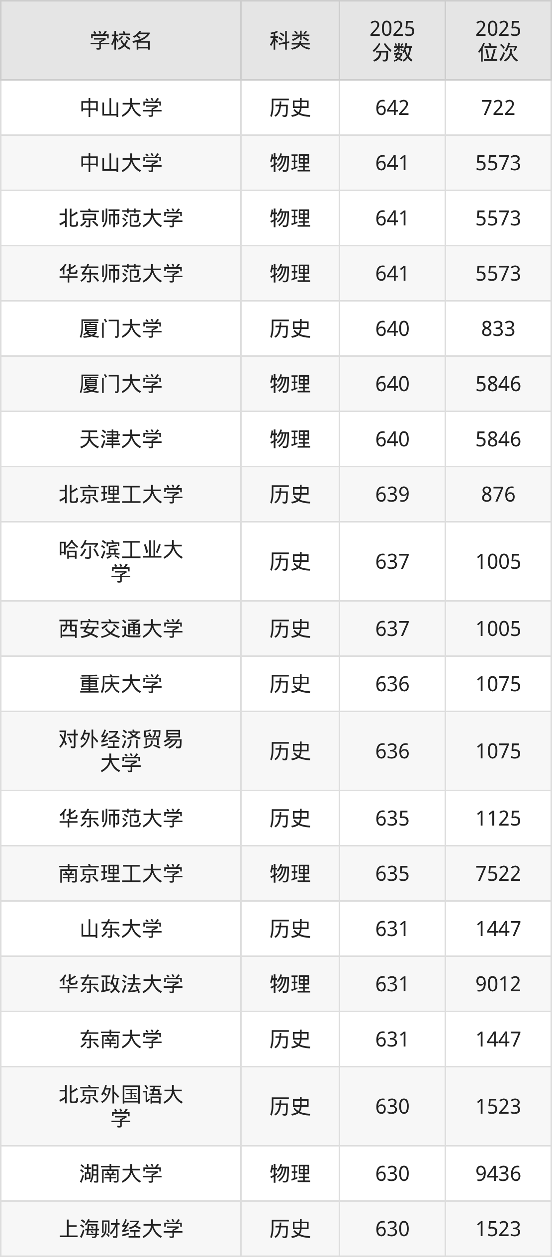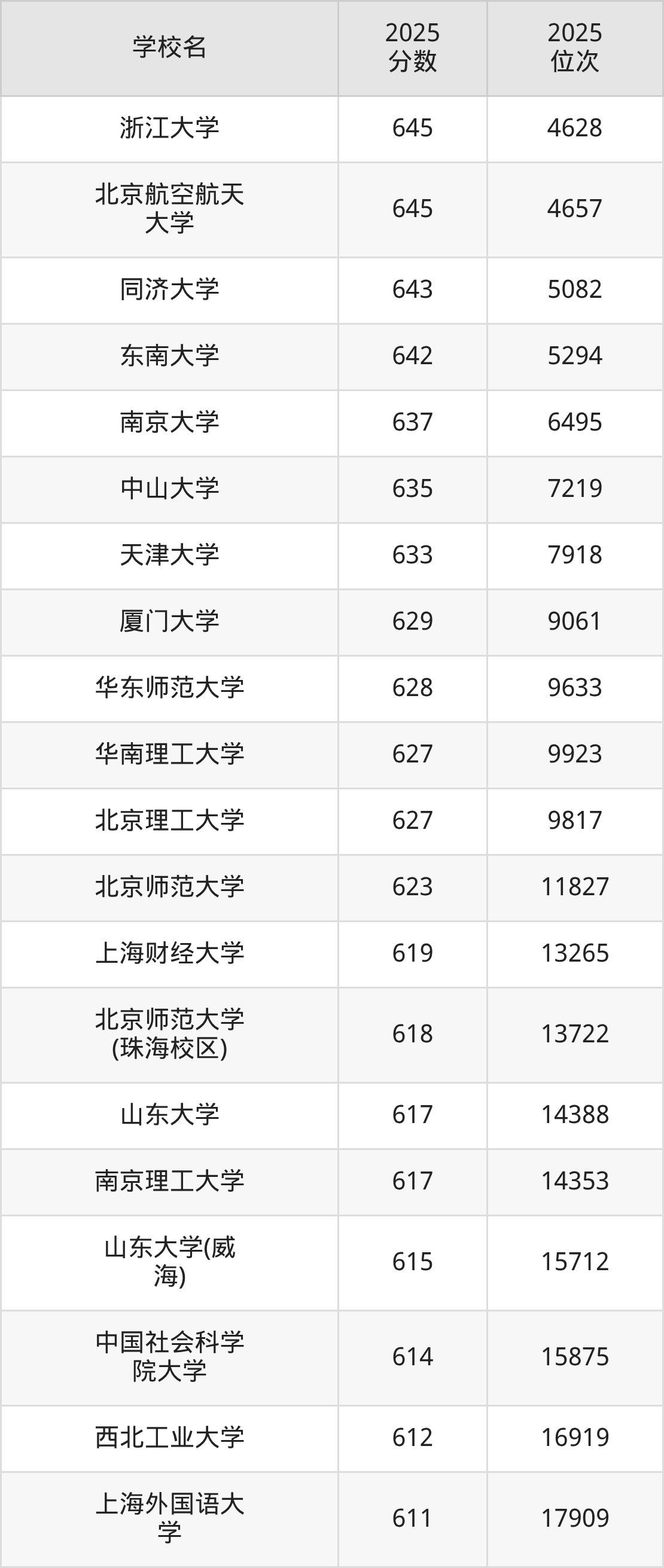 本文将收集各省645分能上的一本大学位次排名表(不含特殊招生计划、中外合作、分校区等),以供2026届考生参考。