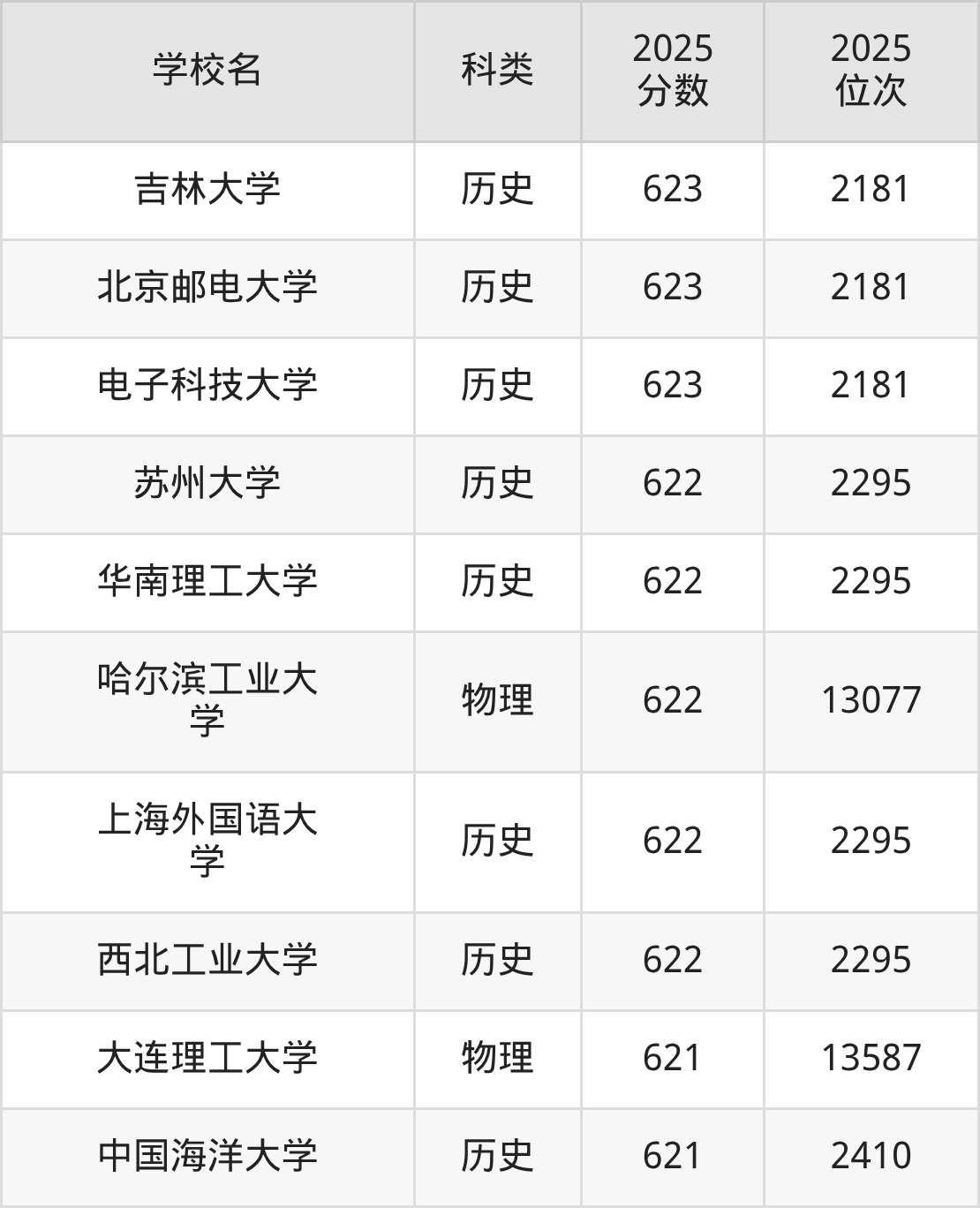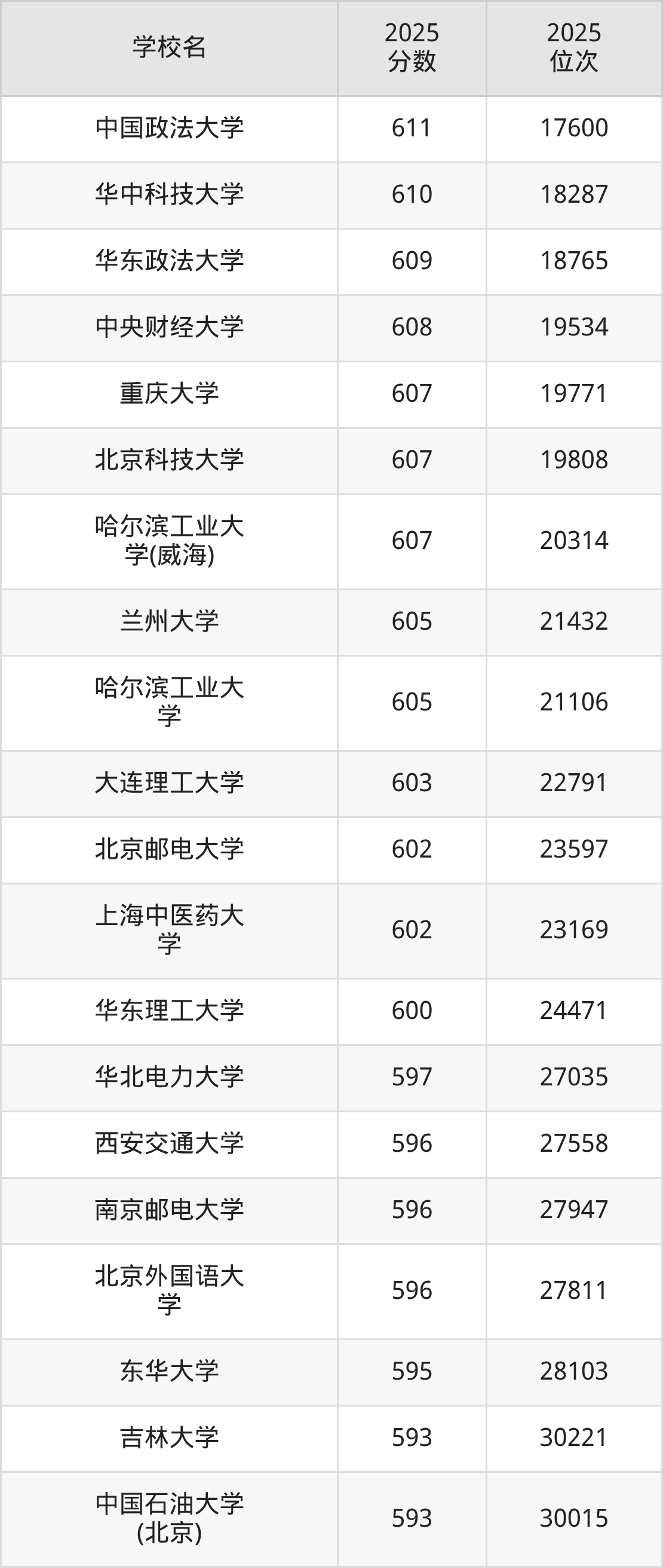 除上述院校外,645分可上的公办一本大学还有中国石油大学(北京)(593分,位次30015名)、广州大学(566分,位次57960名)。