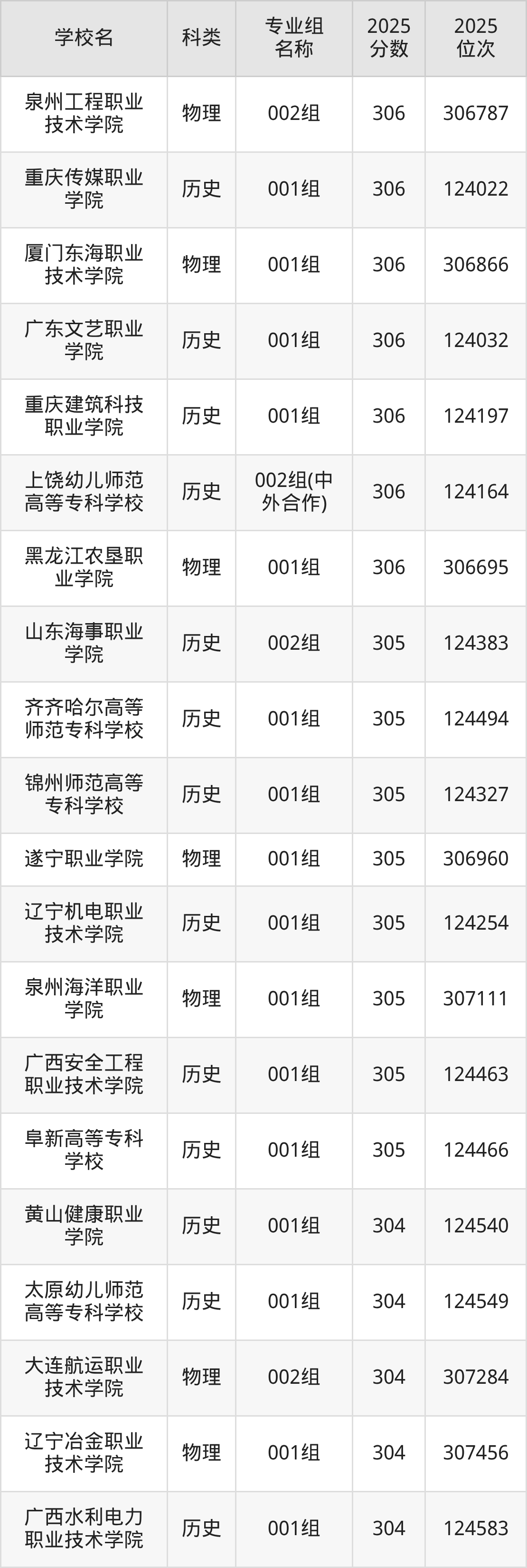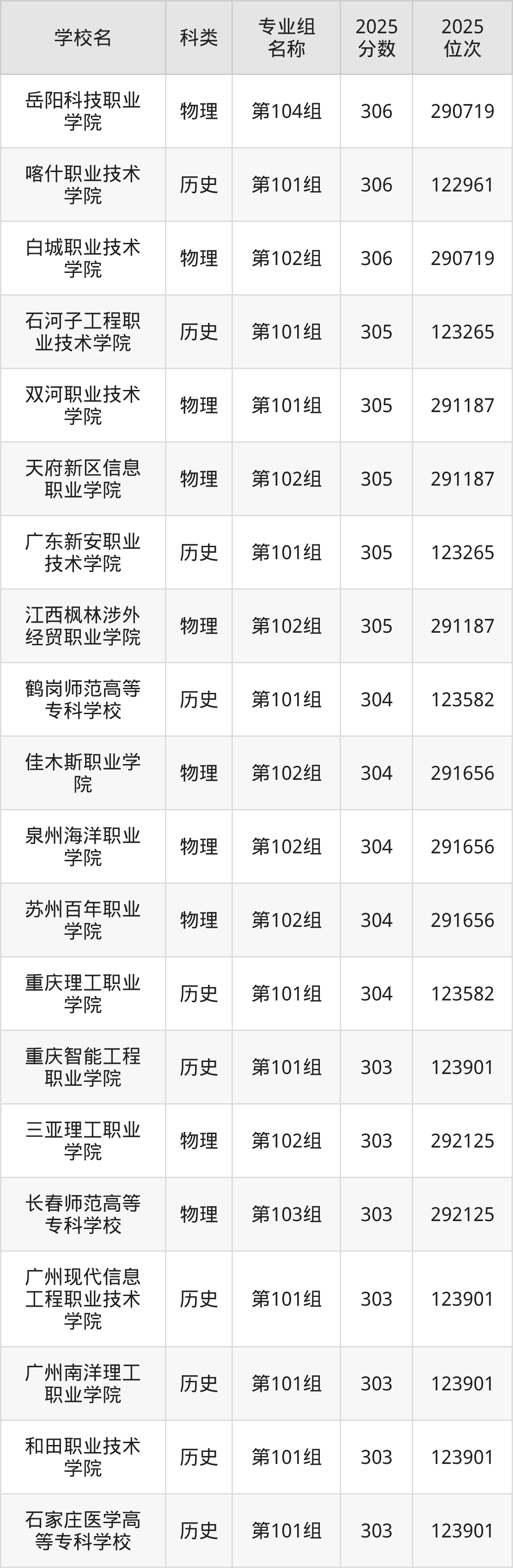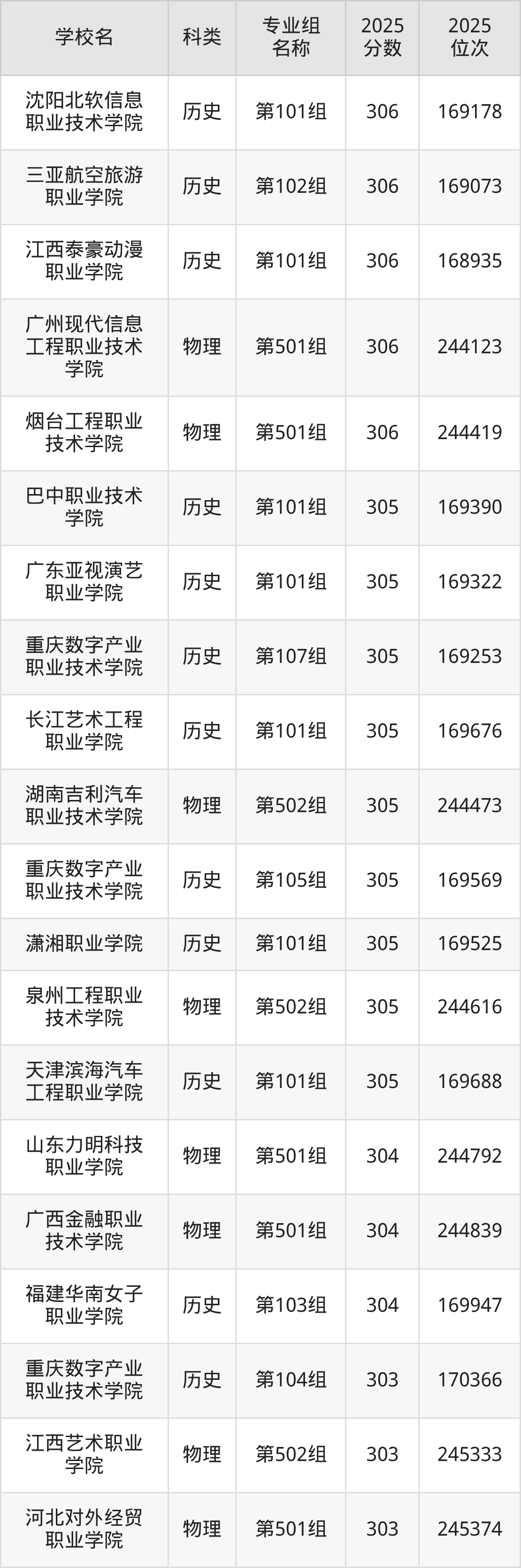 本文将收集各省306分能上的专科学校位次排名表(不含特殊招生计划、中外合作、分校区等),以供2026届考生参考。
