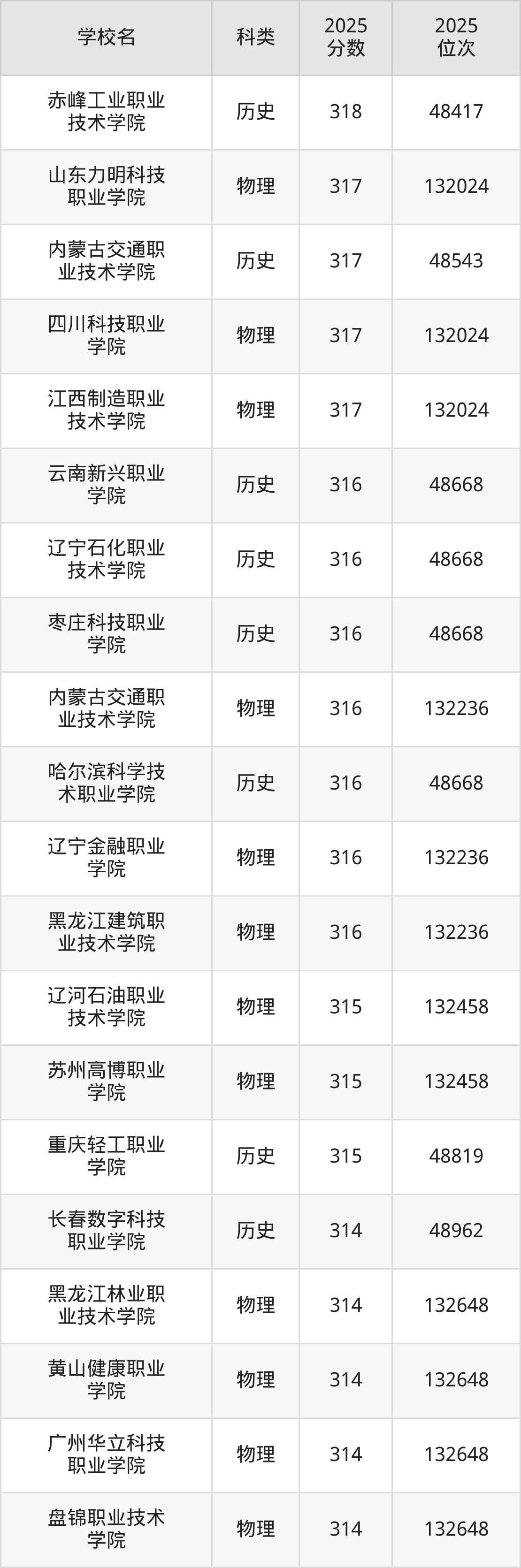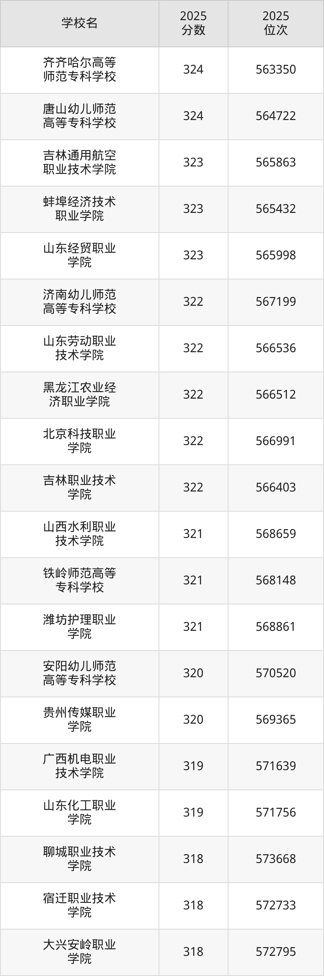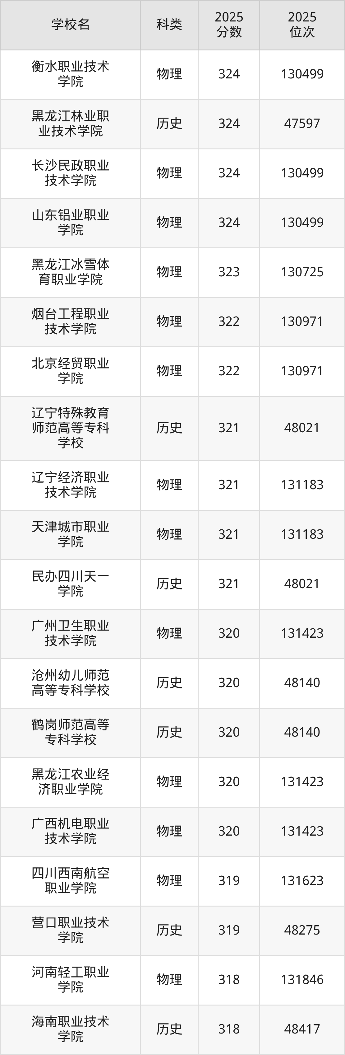 本文将收集各省324分能上的专科学校位次排名表(不含特殊招生计划、中外合作、分校区等),以供2026届考生参考。