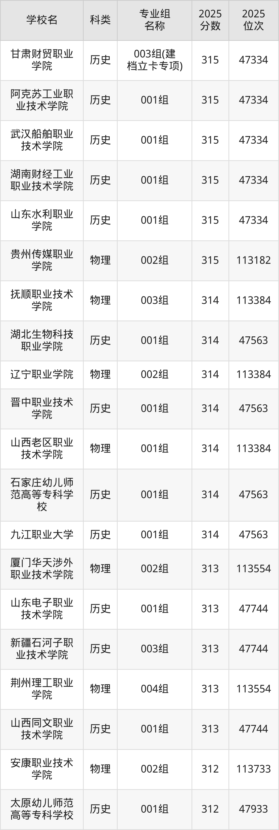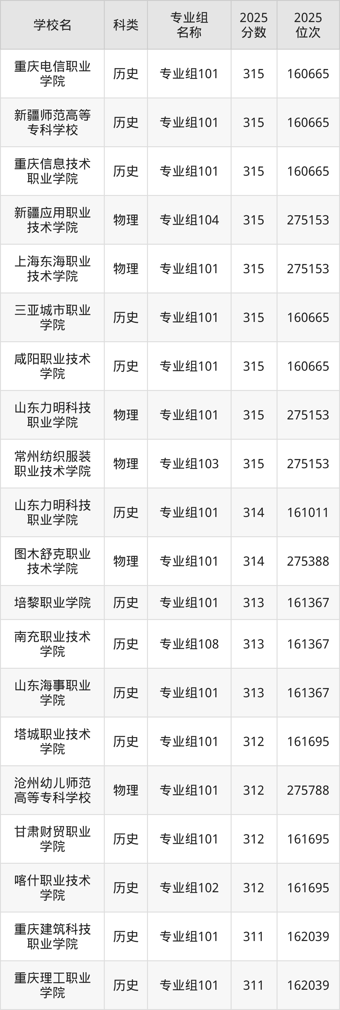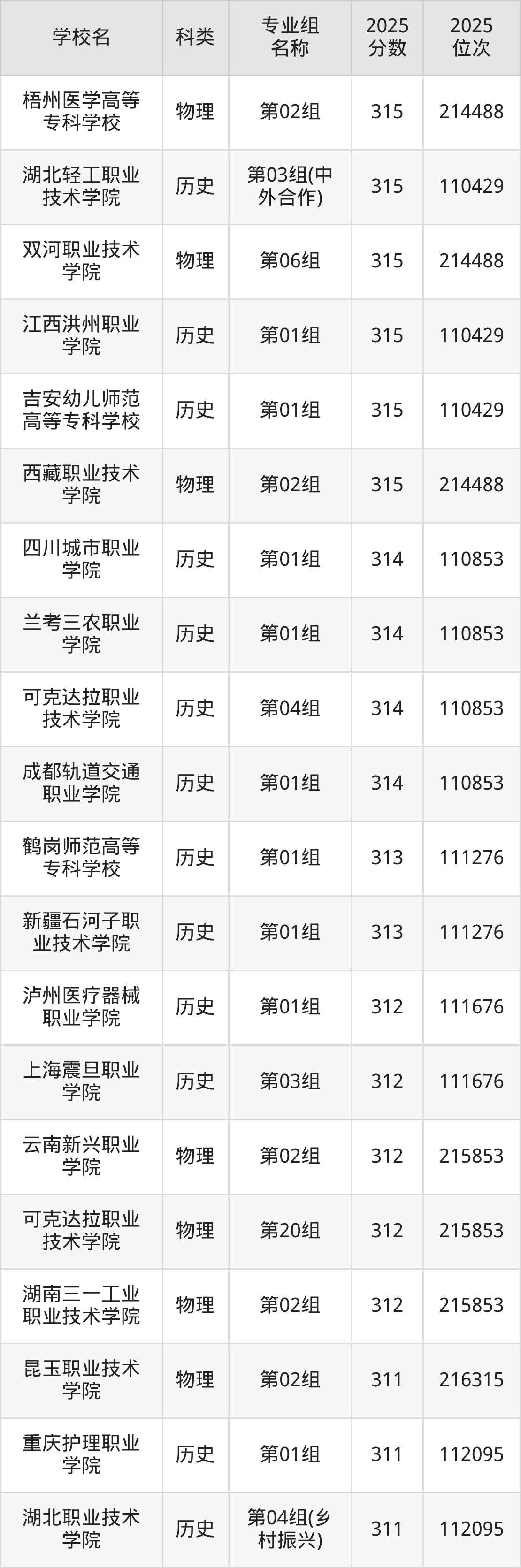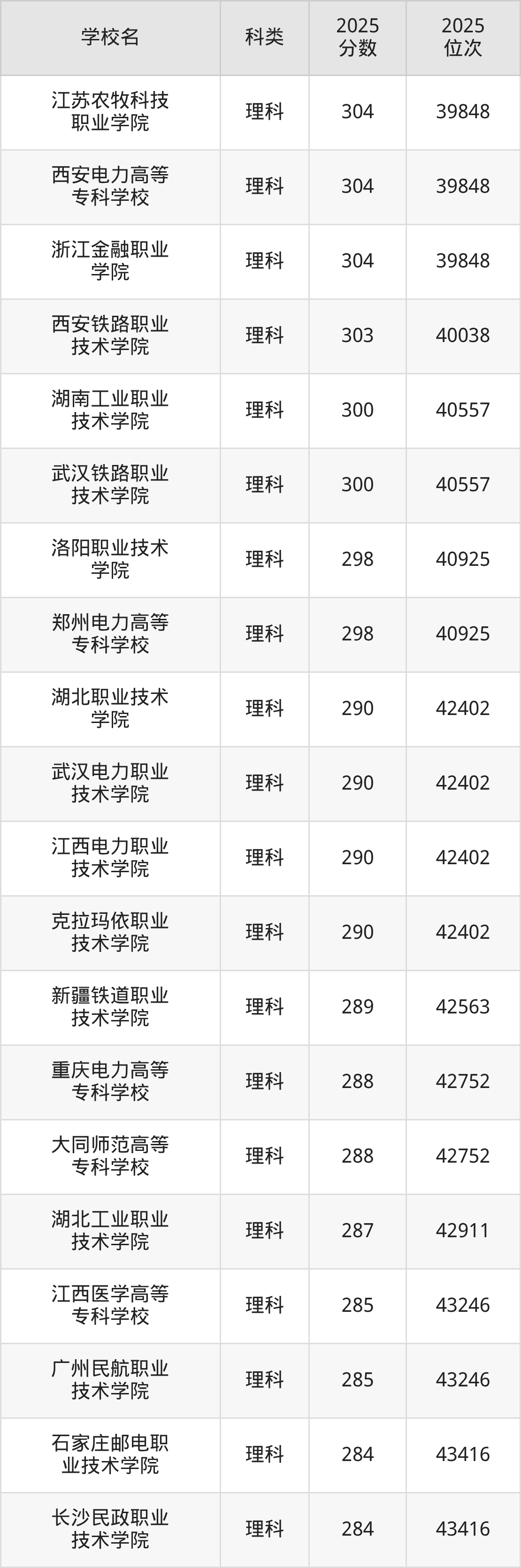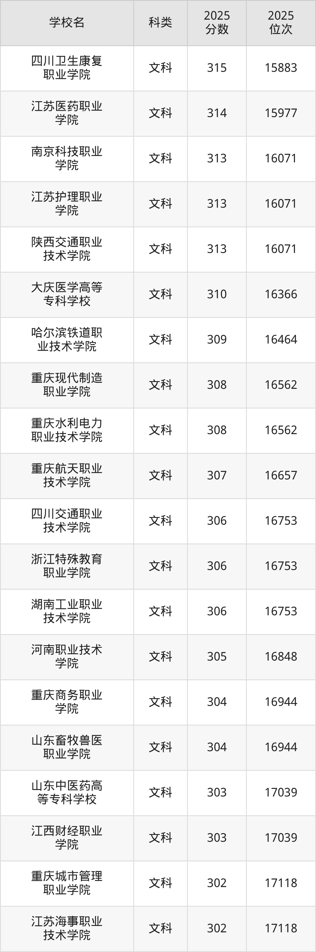 本文将收集各省315分能上的专科学校位次排名表(不含特殊招生计划、中外合作、分校区等),以供2026届考生参考。