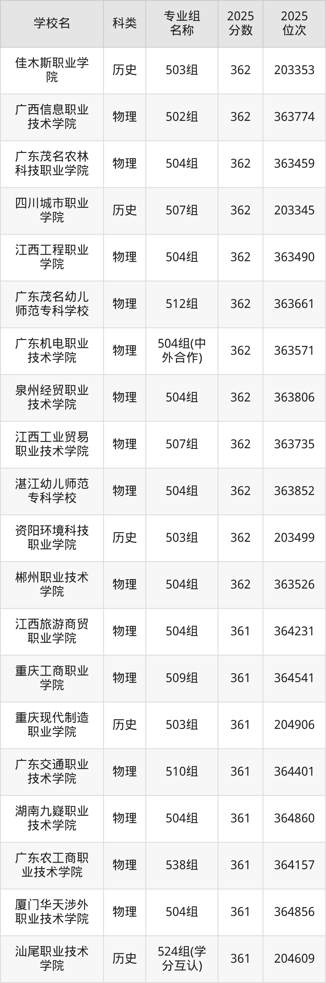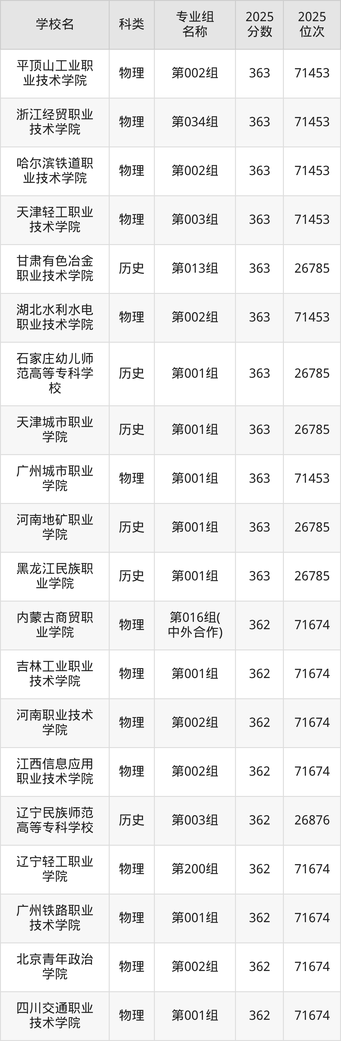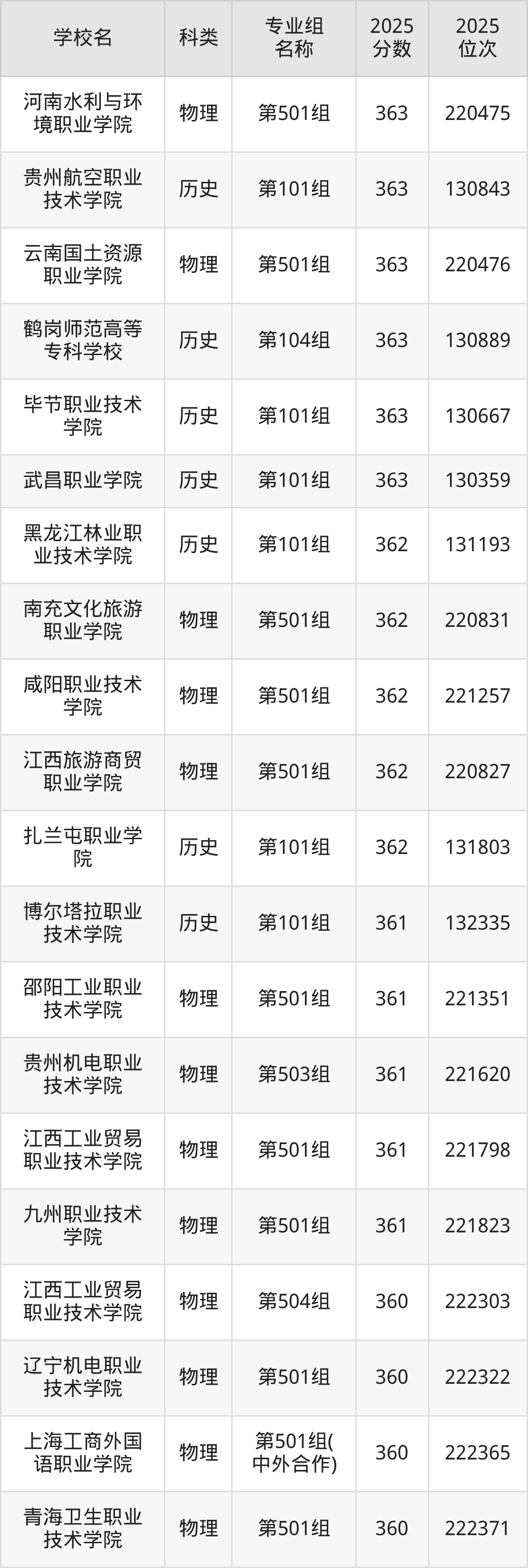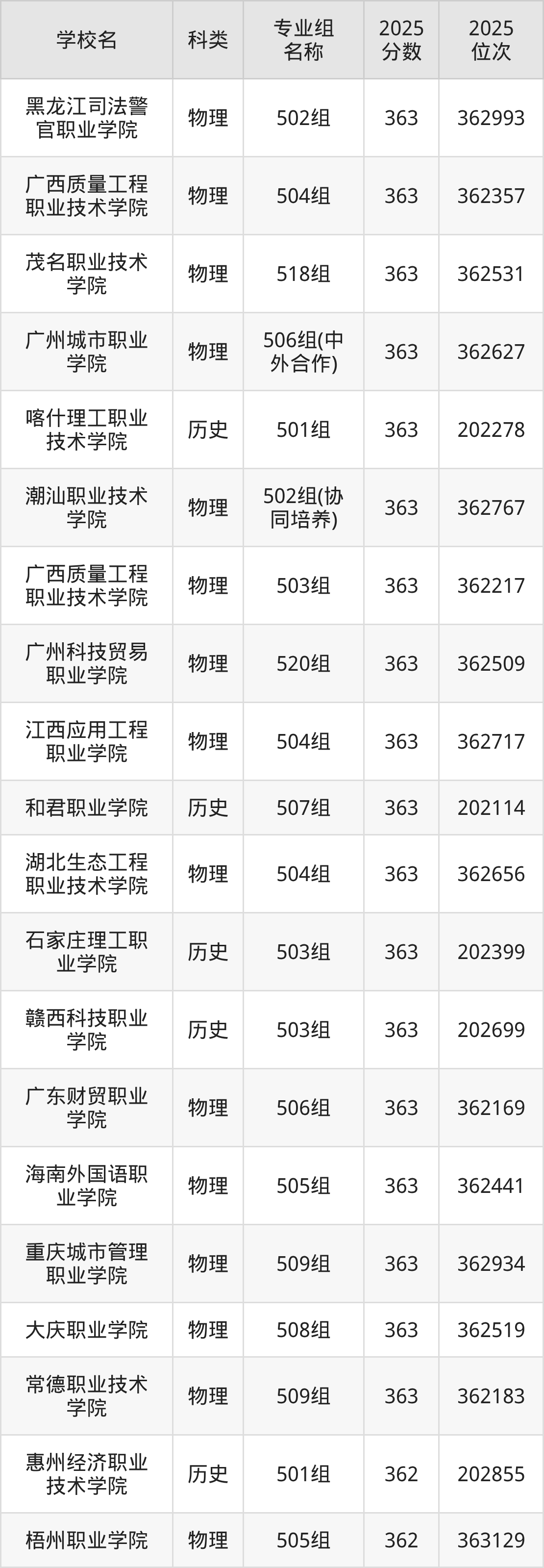 本文将收集各省363分能上的专科学校位次排名表(不含特殊招生计划、中外合作、分校区等),以供2026届考生参考。