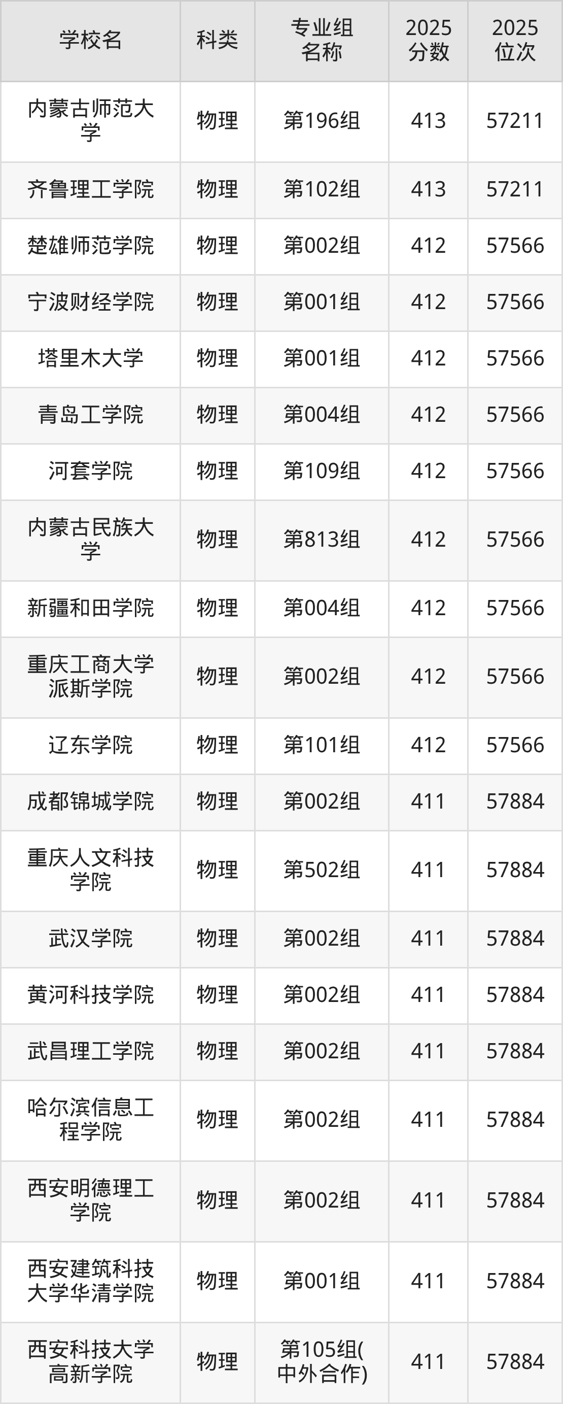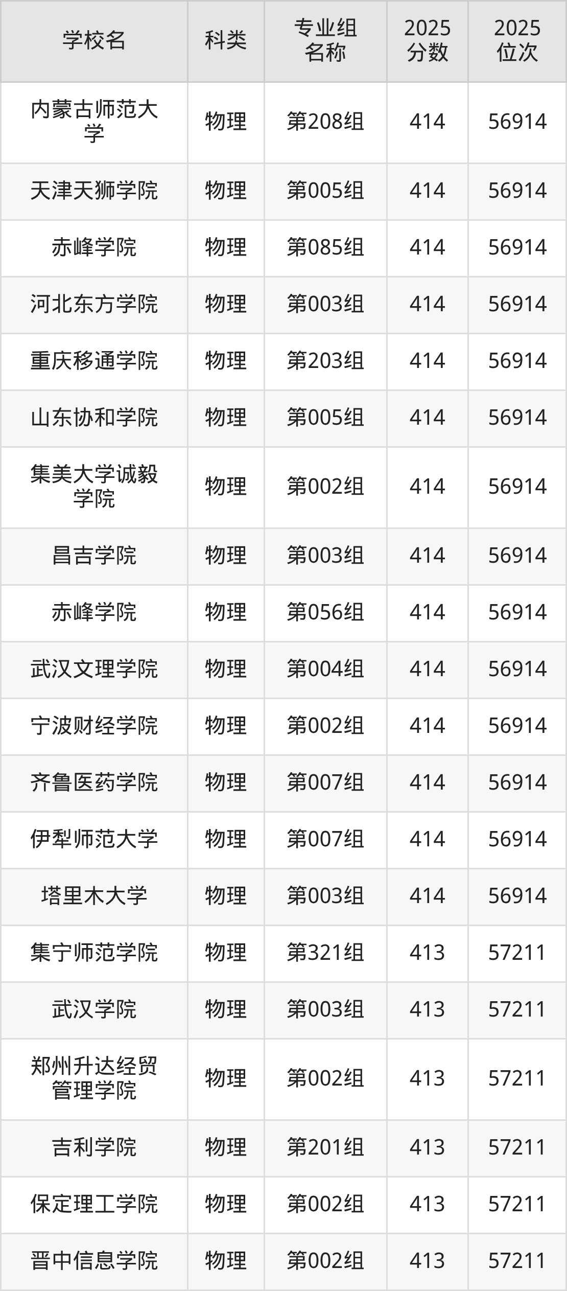 2025年内蒙古物理类本科线为375分,414分能上的二本大学共计168所,其中最低分公办院校为内蒙古医科大学(第010组375分),对应最低位次为68528名。因此想上公办本科的考生自治区排名位次至少要在68528名以内。