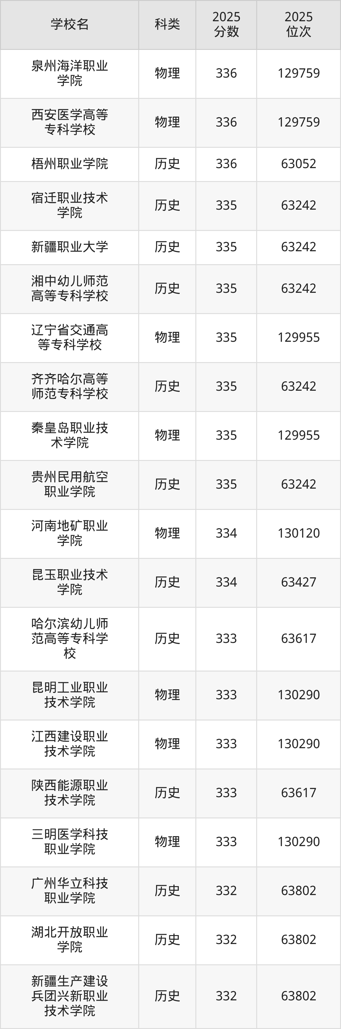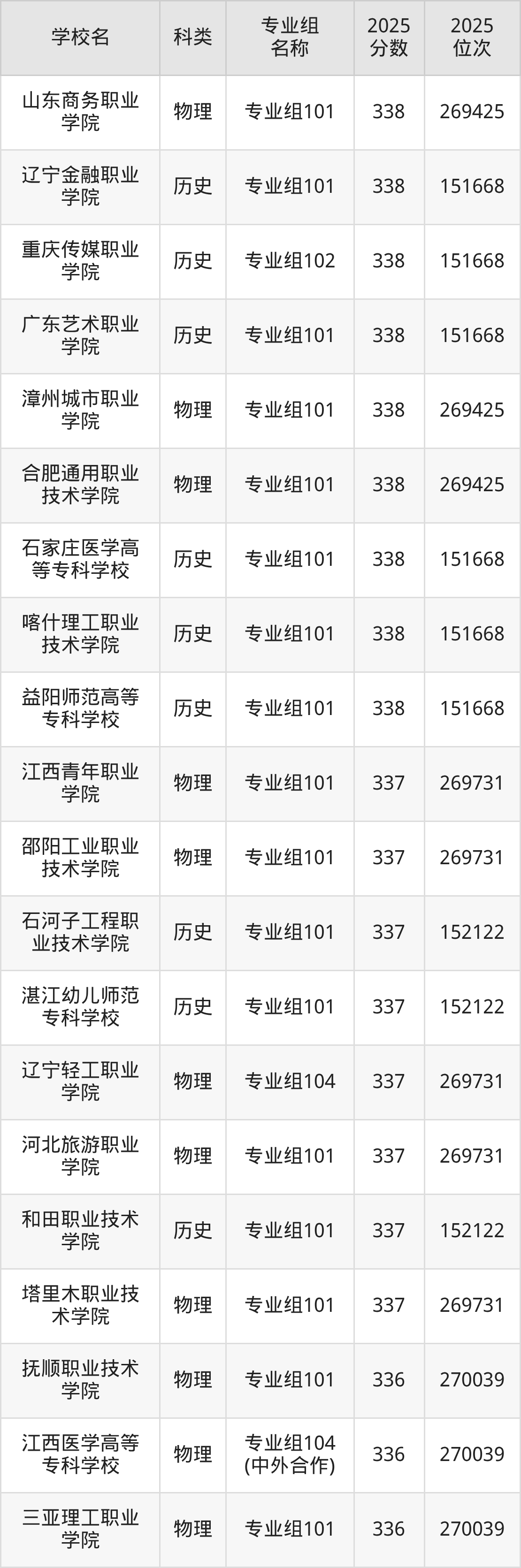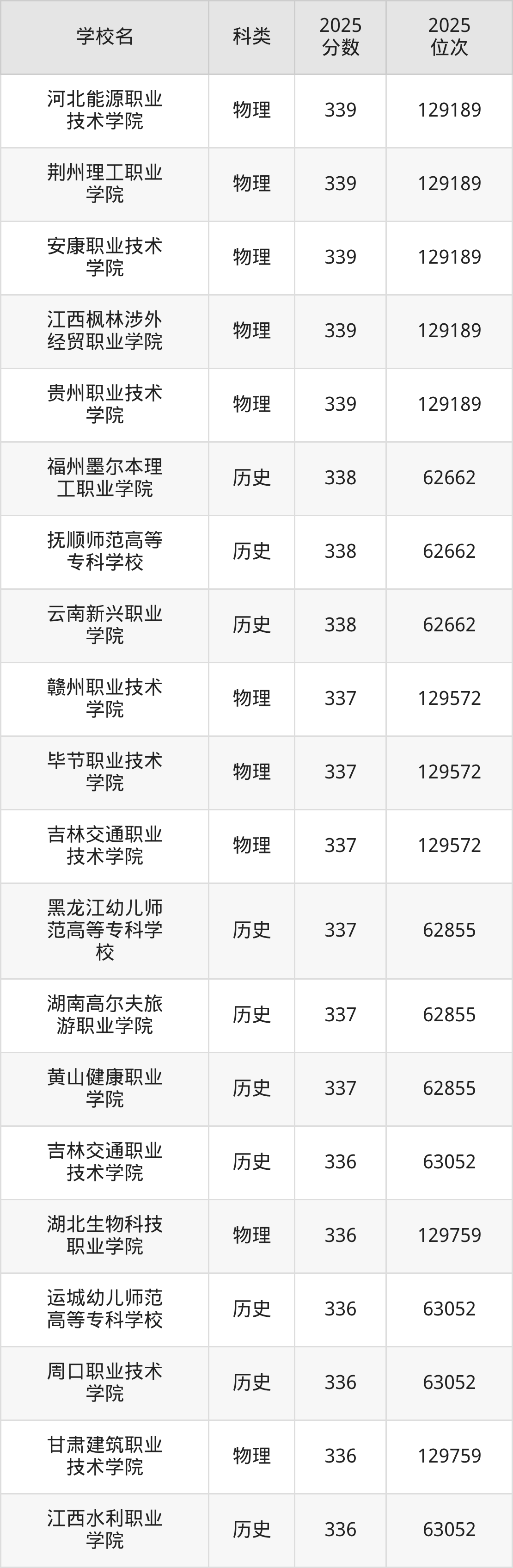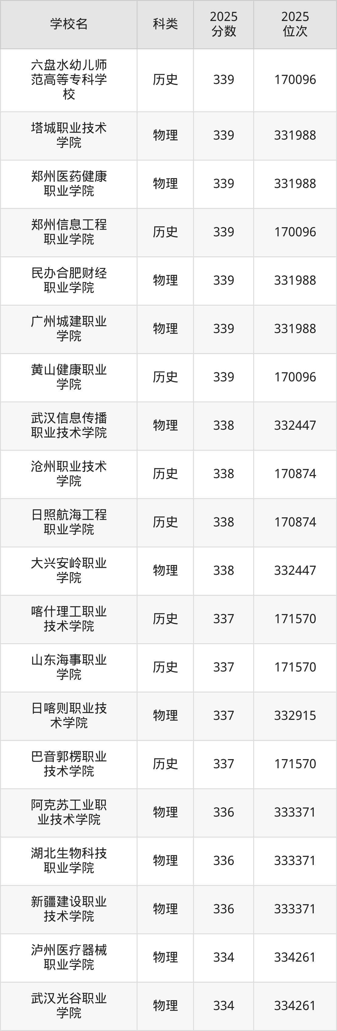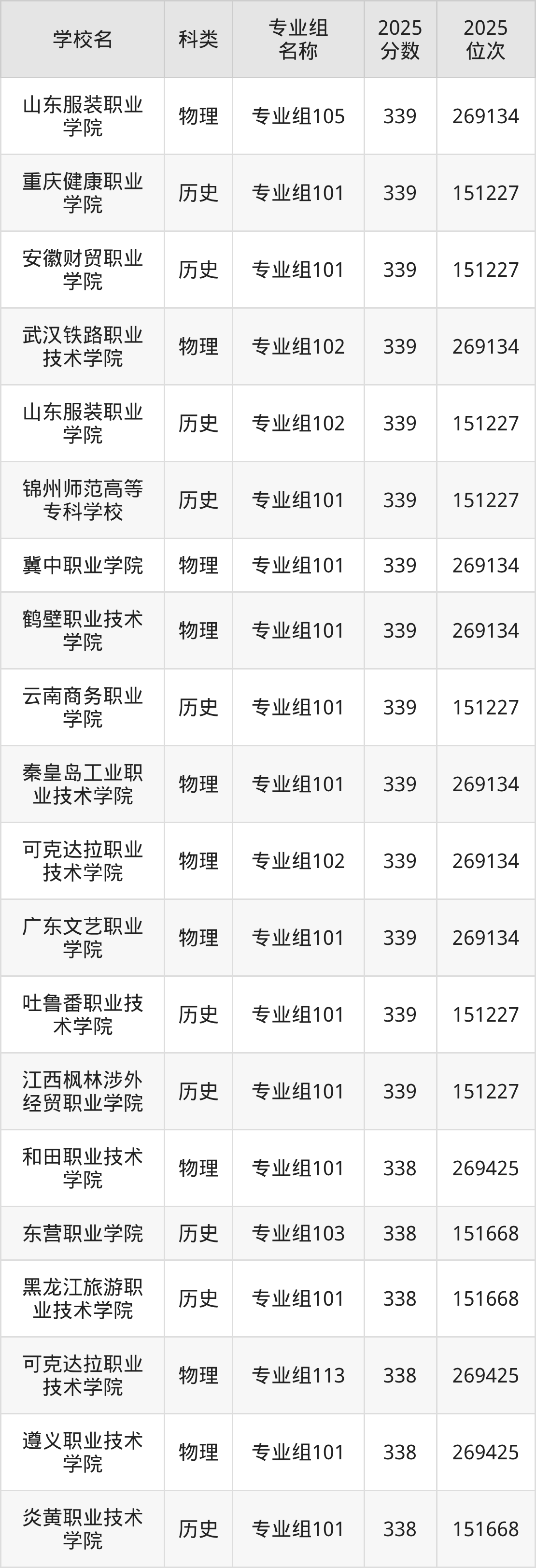 本文将收集各省339分能上的专科学校位次排名表(不含特殊招生计划、中外合作、分校区等),以供2026届考生参考。