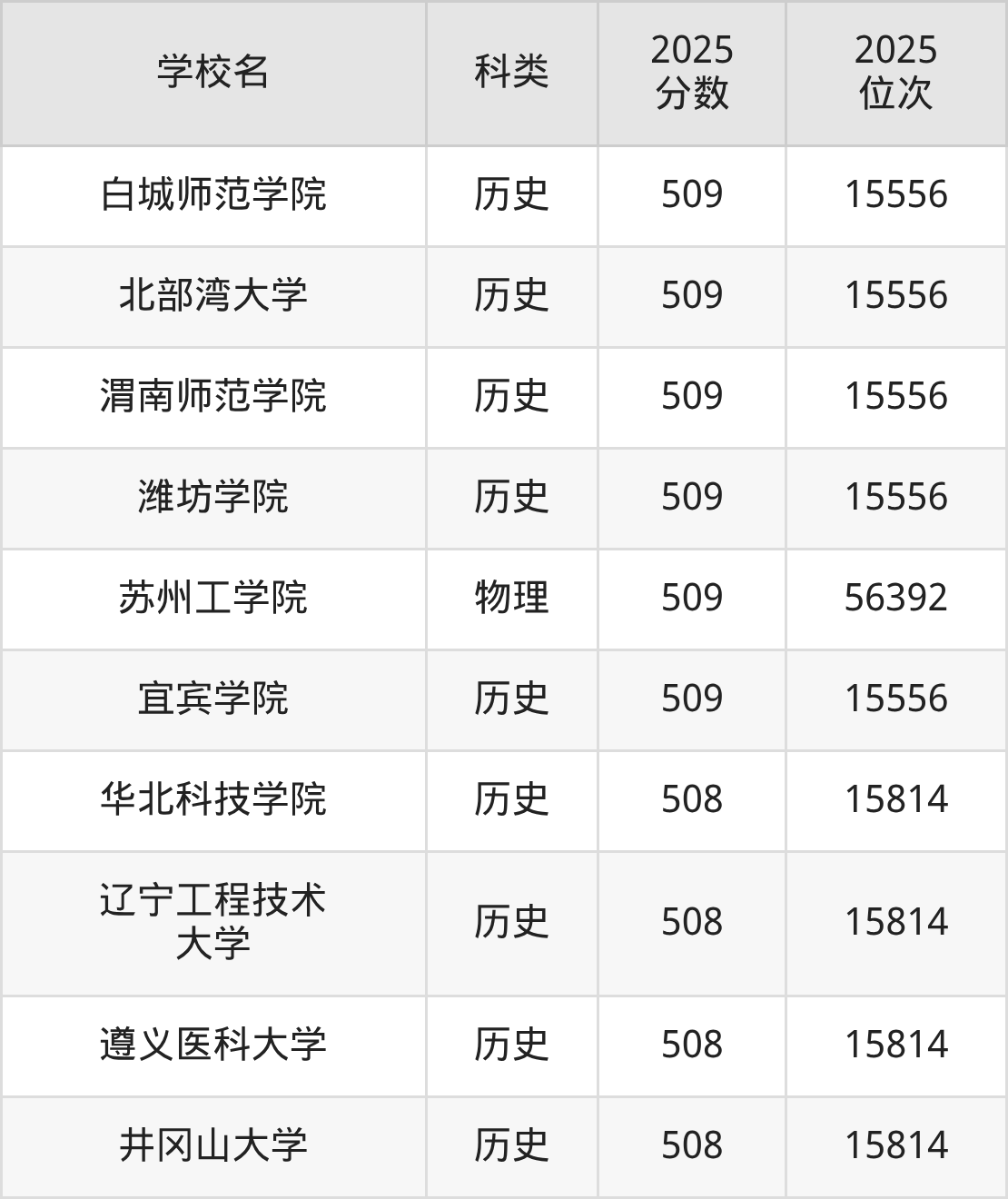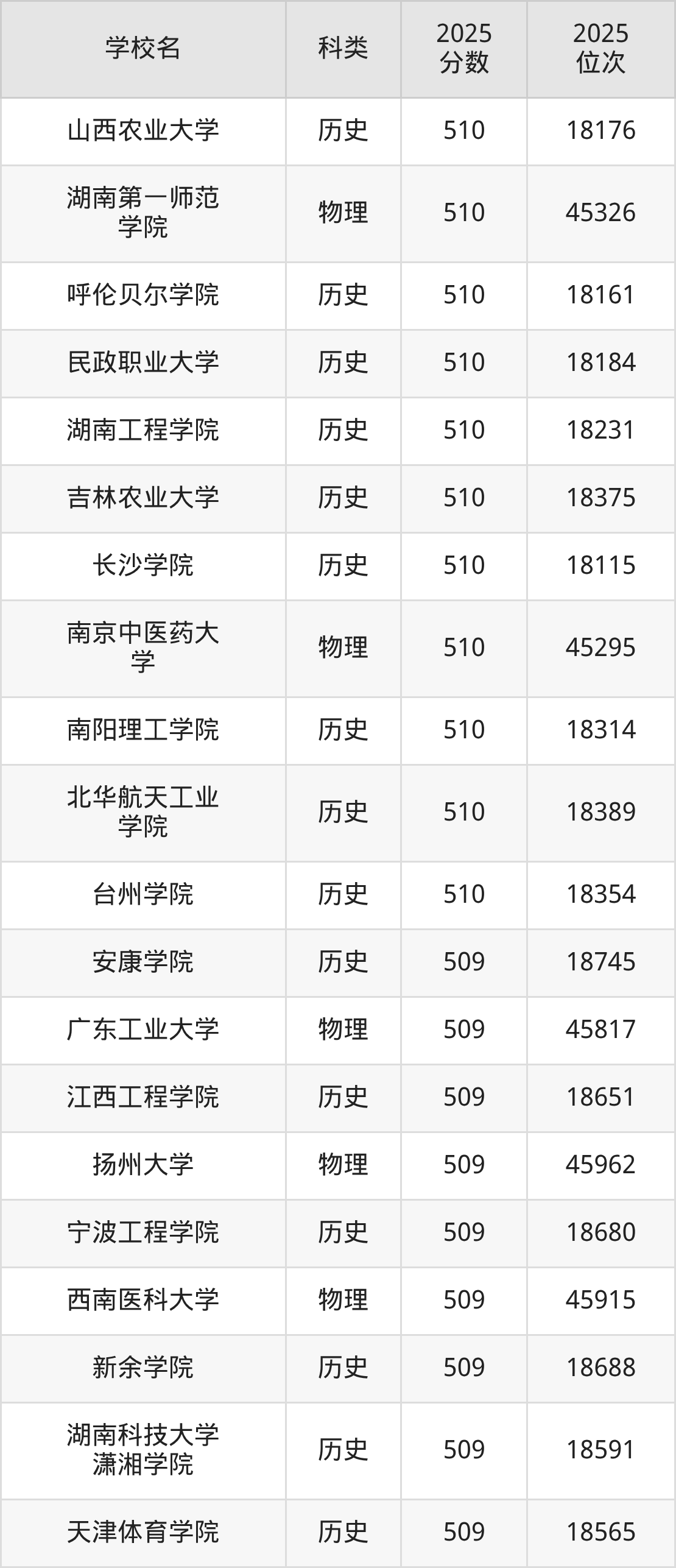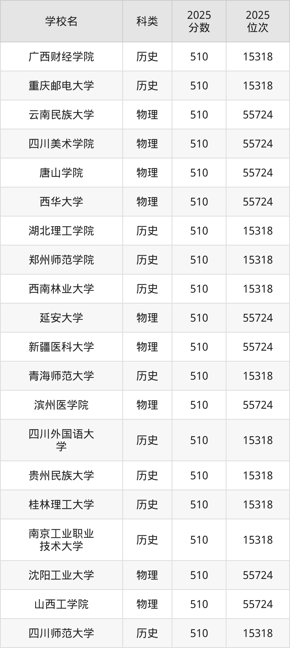 本文将收集各省510分能上的本科大学位次排名表(不含特殊招生计划、中外合作、分校区等),以供2026届考生参考。