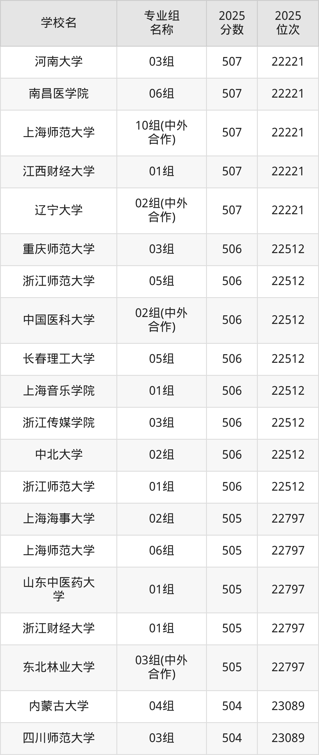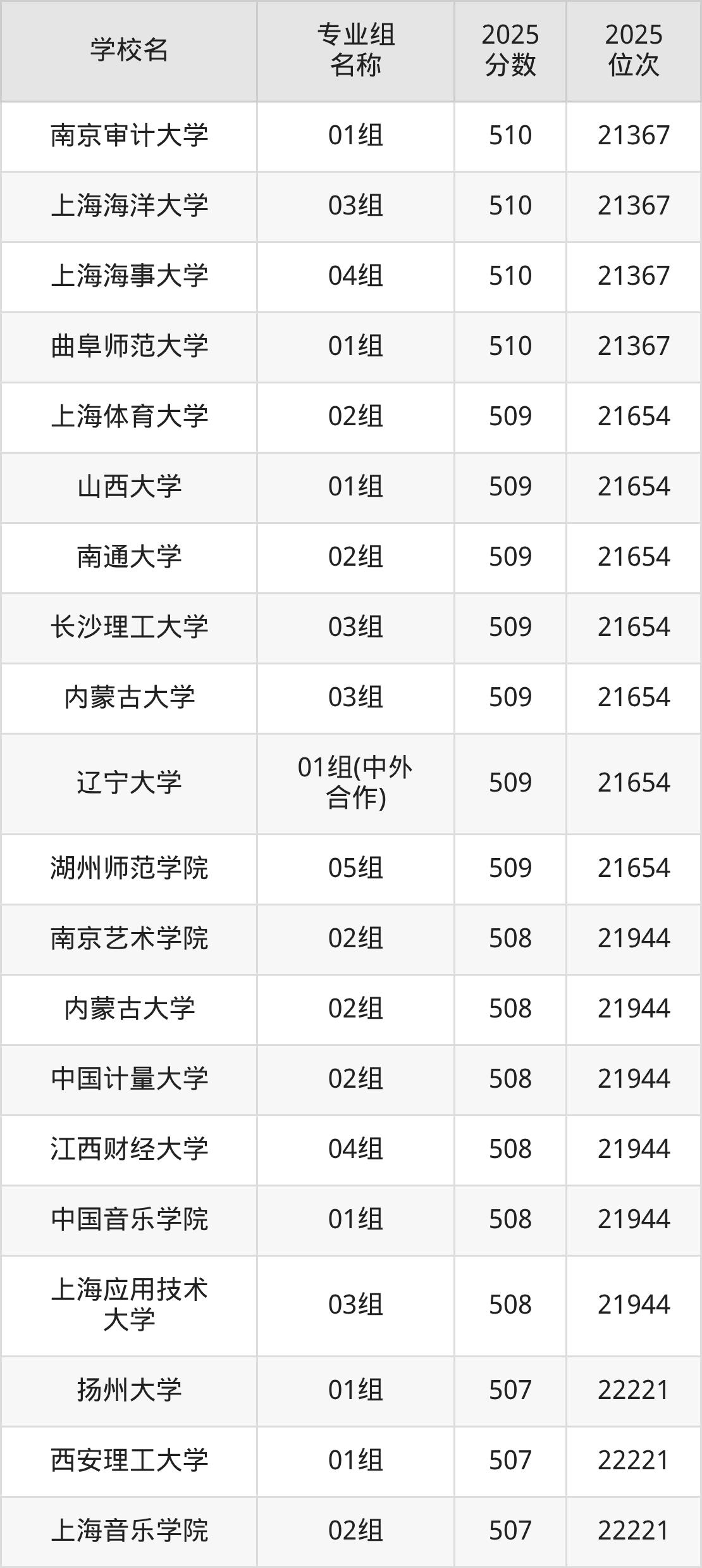 除上述院校外,510分可上的公办本科大学还有内蒙古大学(03组509分,位次21654名)、鲁东大学(01组445分,位次39429名)。