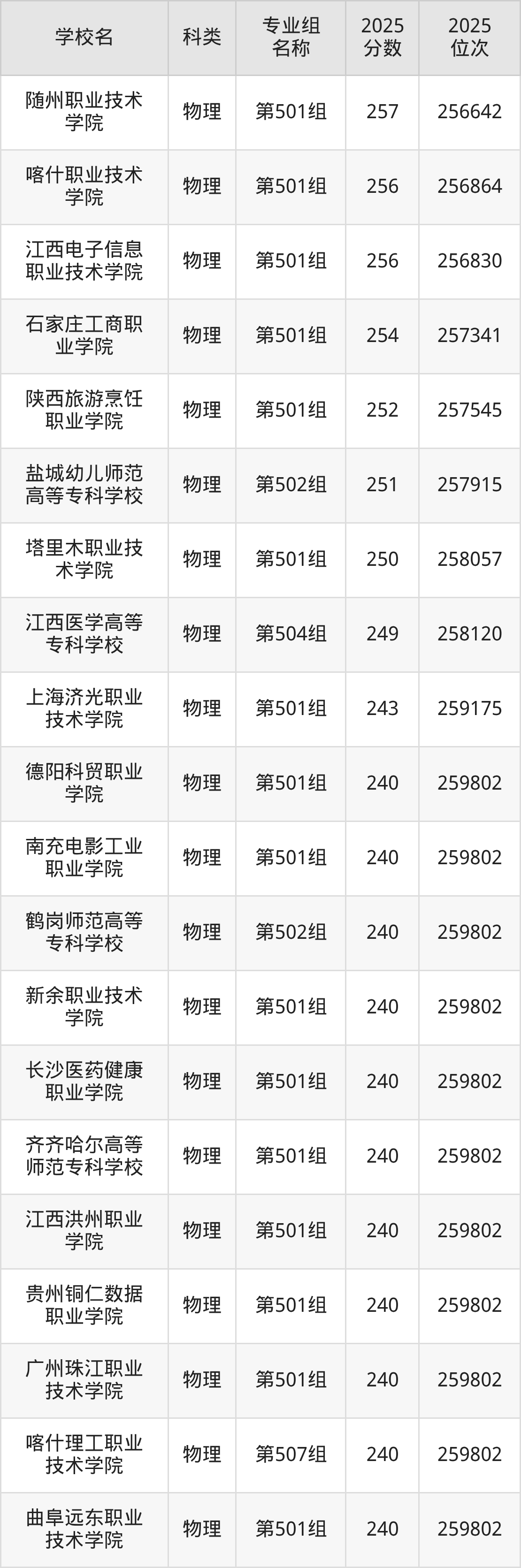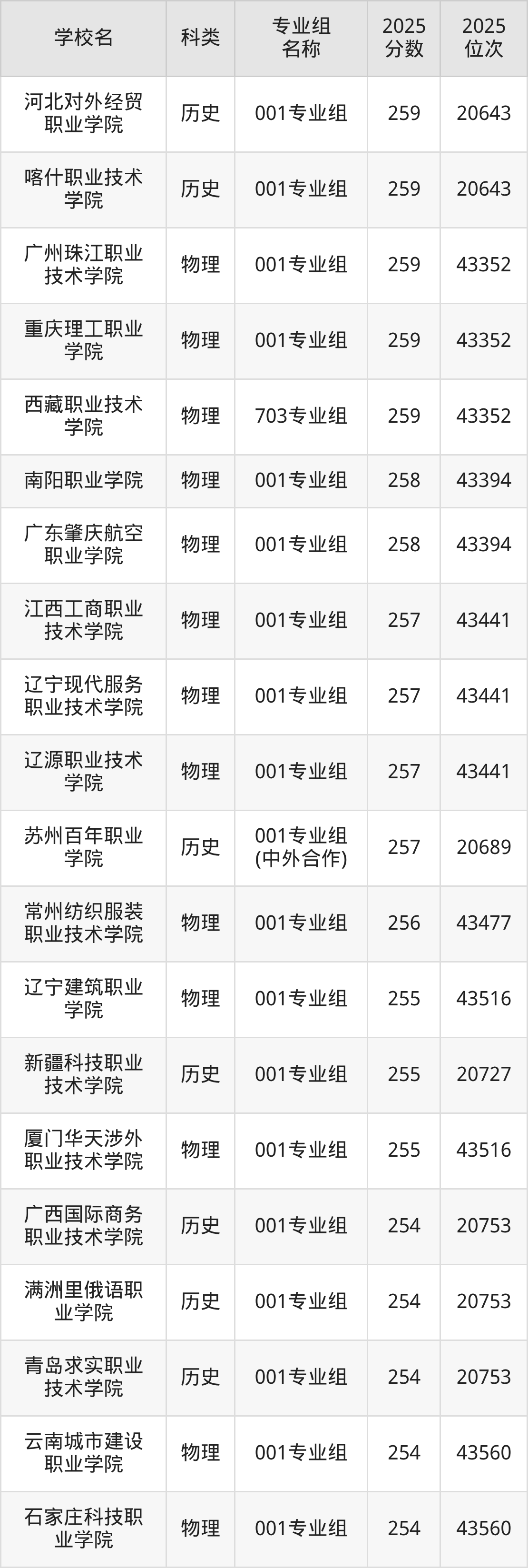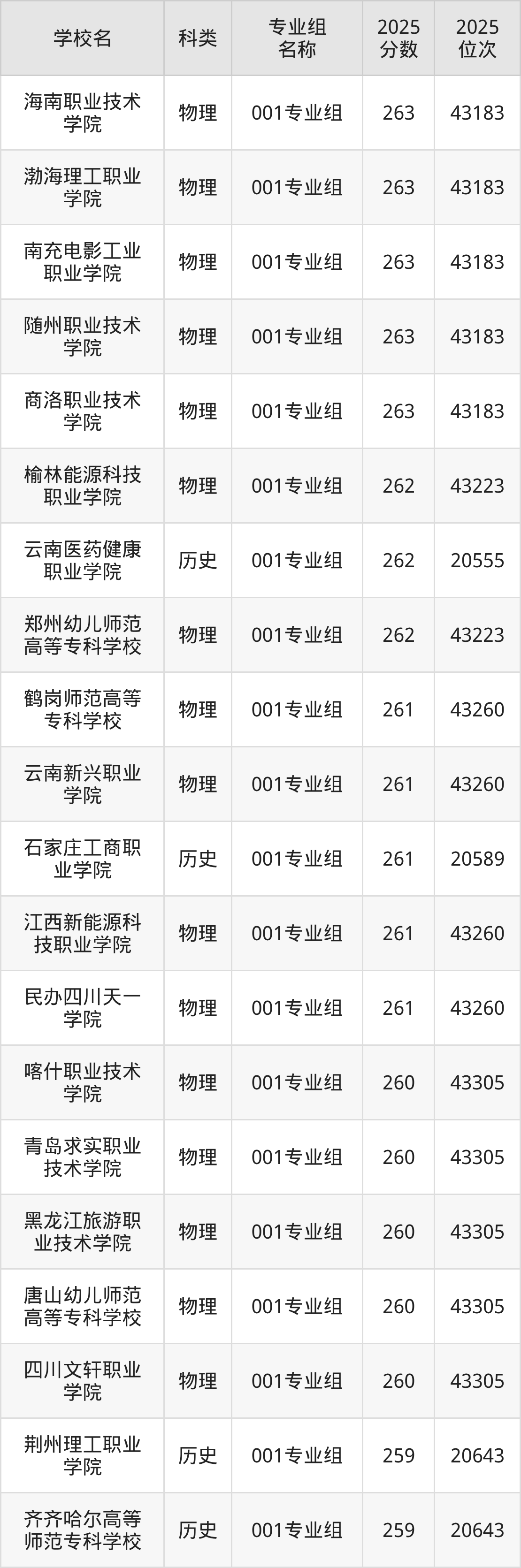 本文将收集各省263分能上的专科学校位次排名表(不含特殊招生计划、中外合作、分校区等),以供2026届考生参考。
