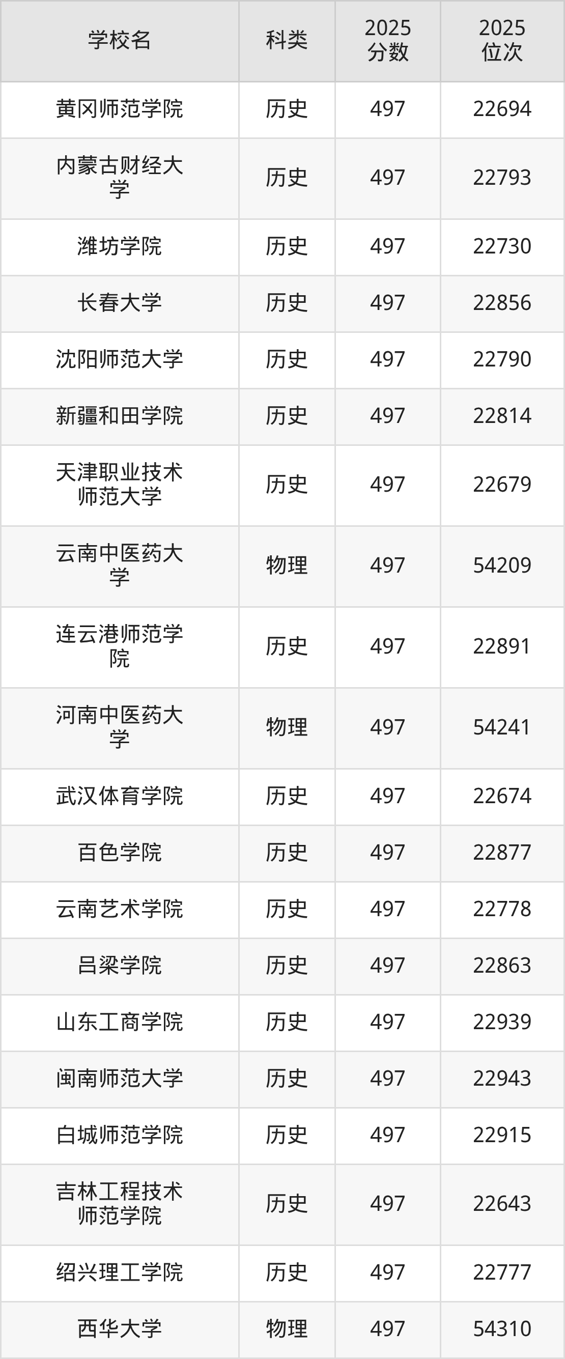本文将收集各省497分能上的本科大学位次排名表(不含特殊招生计划、中外合作、分校区等),以供2026届考生参考。