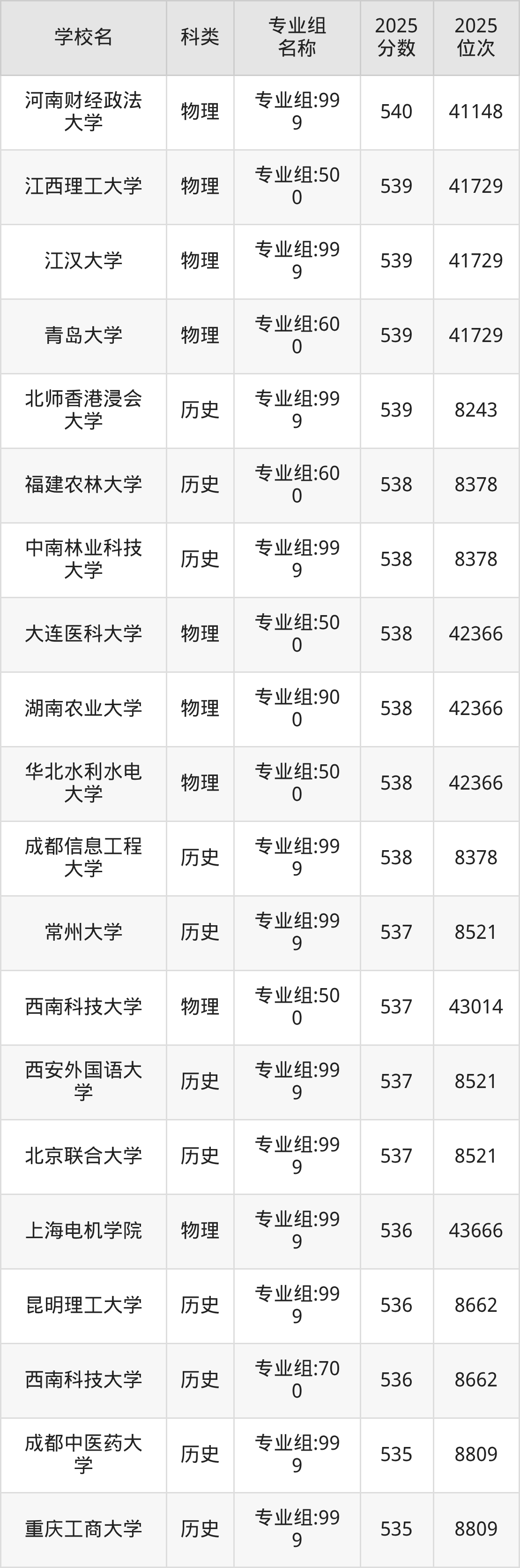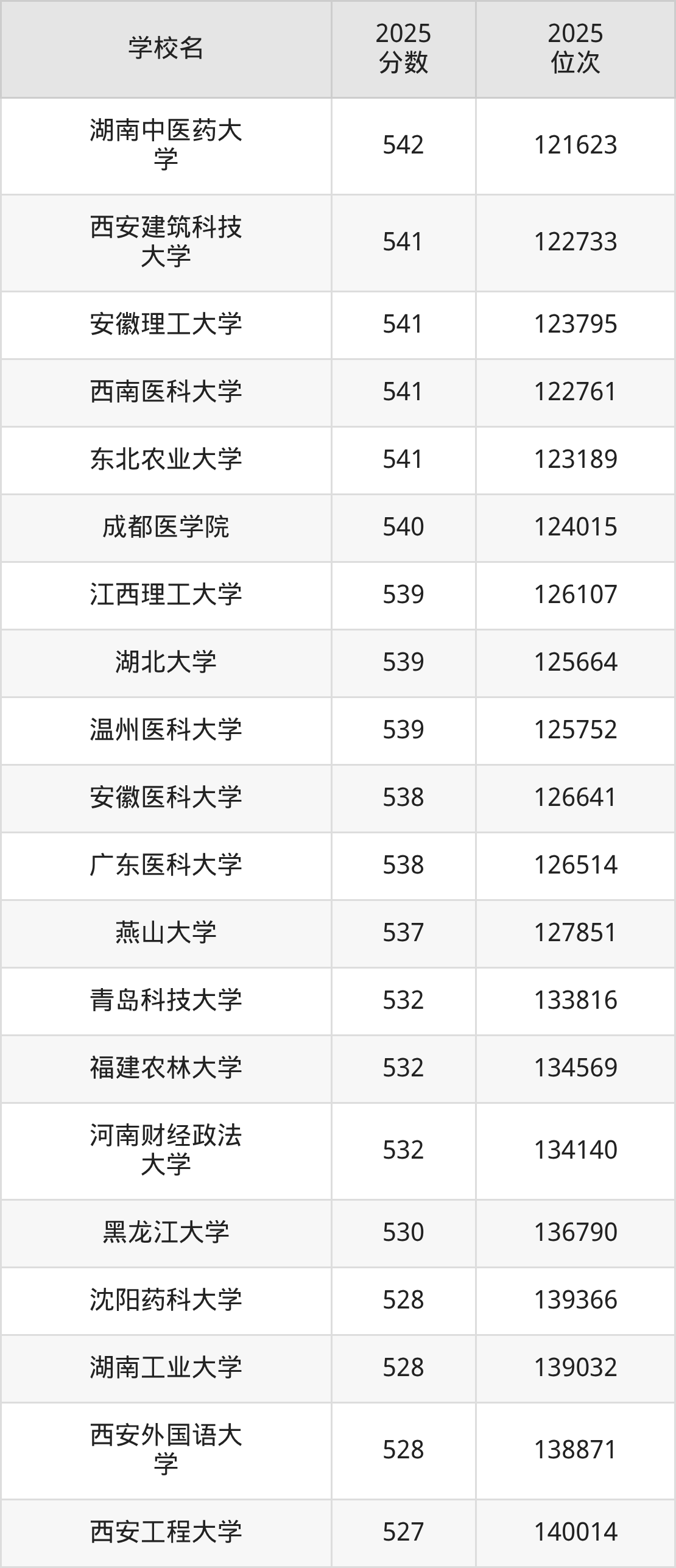 三、湖南543分能上的一本大学排名表