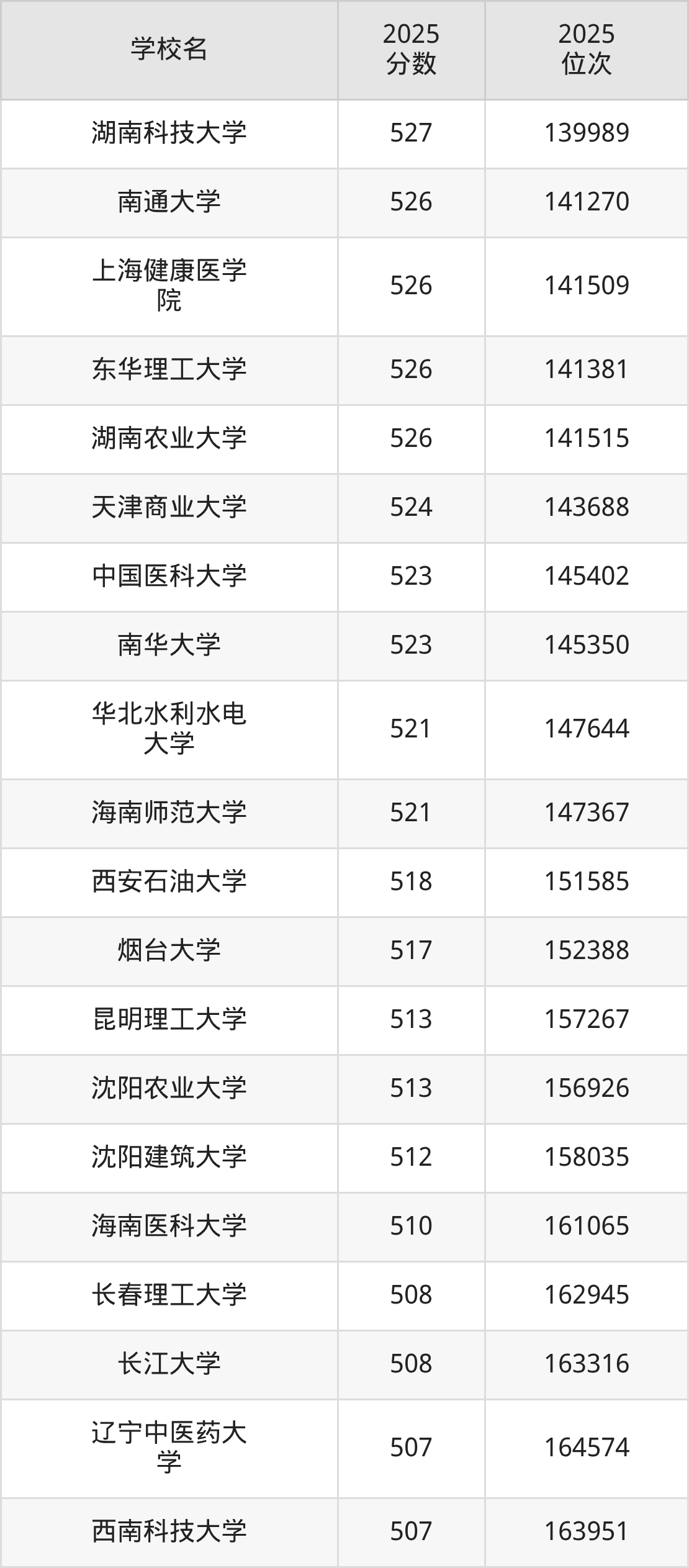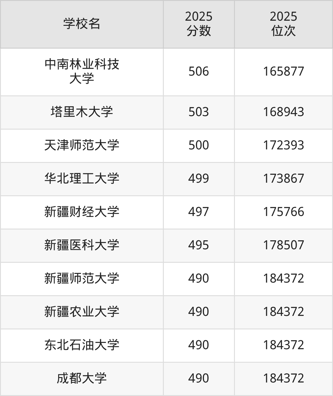 录取位次排名较低的公办一本大学还有长春理工大学(位次20965名)、新疆医科大学(位次91278名)、新疆农业大学(位次87828名)等,适合省排名在2万名开外的本科生报考。