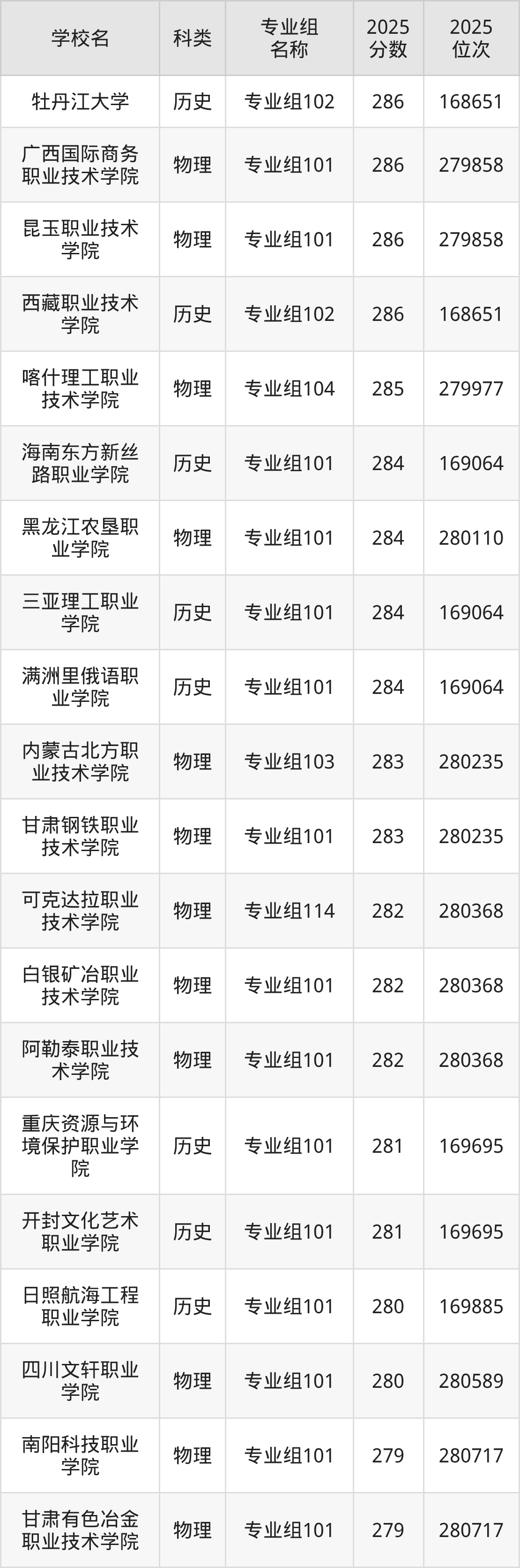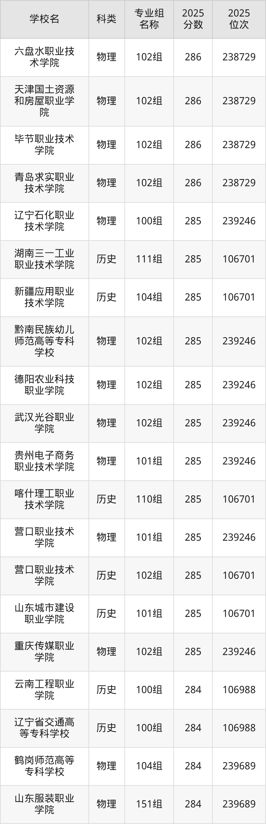 本文将收集各省286分能上的专科学校位次排名表(不含特殊招生计划、中外合作、分校区等),以供2026届考生参考。