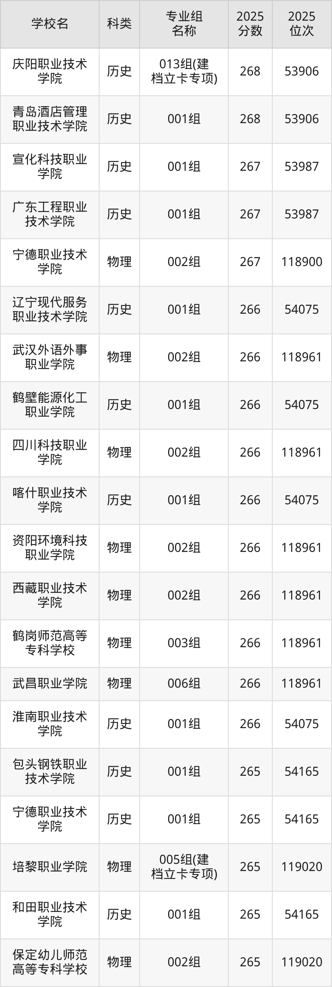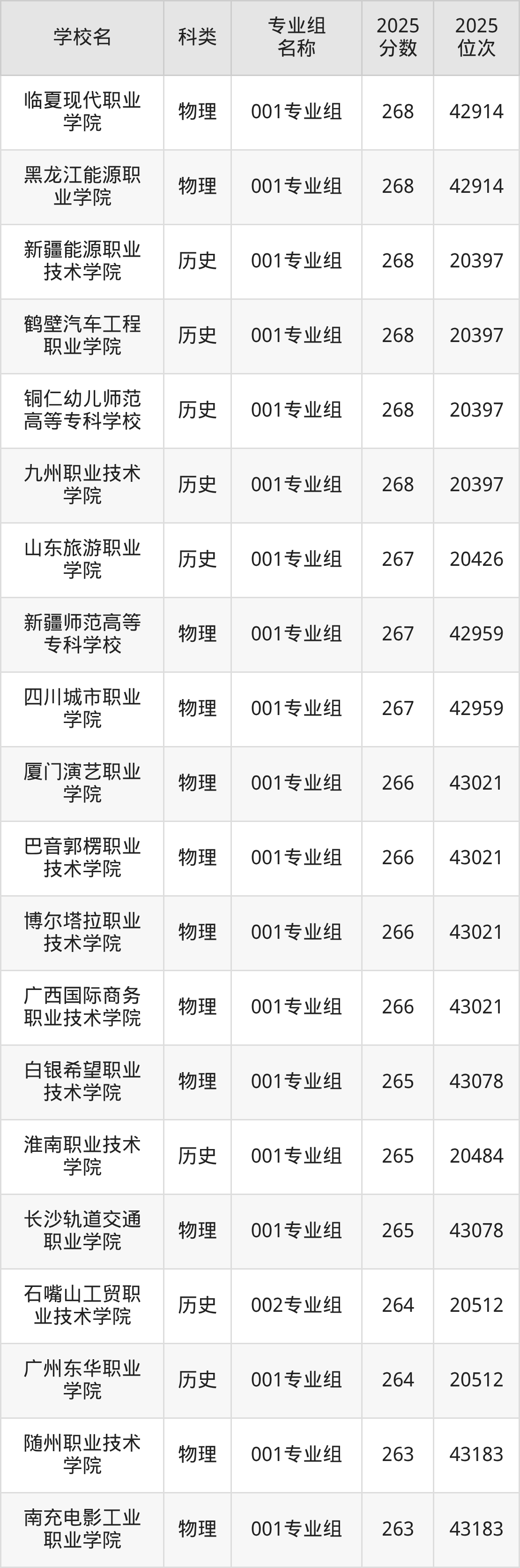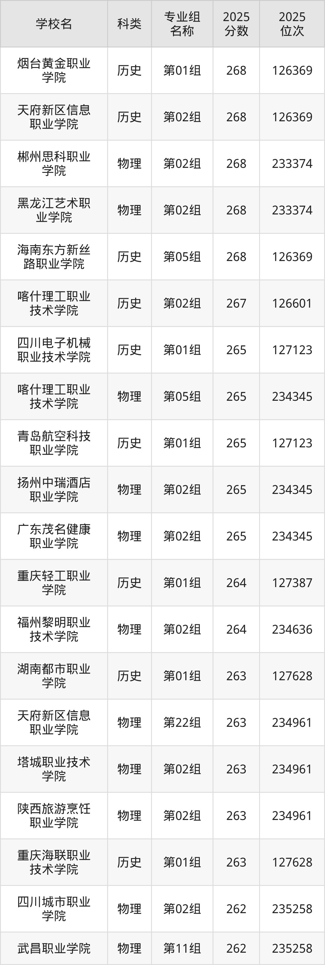 本文将收集各省268分能上的专科学校位次排名表(不含特殊招生计划、中外合作、分校区等),以供2026届考生参考。