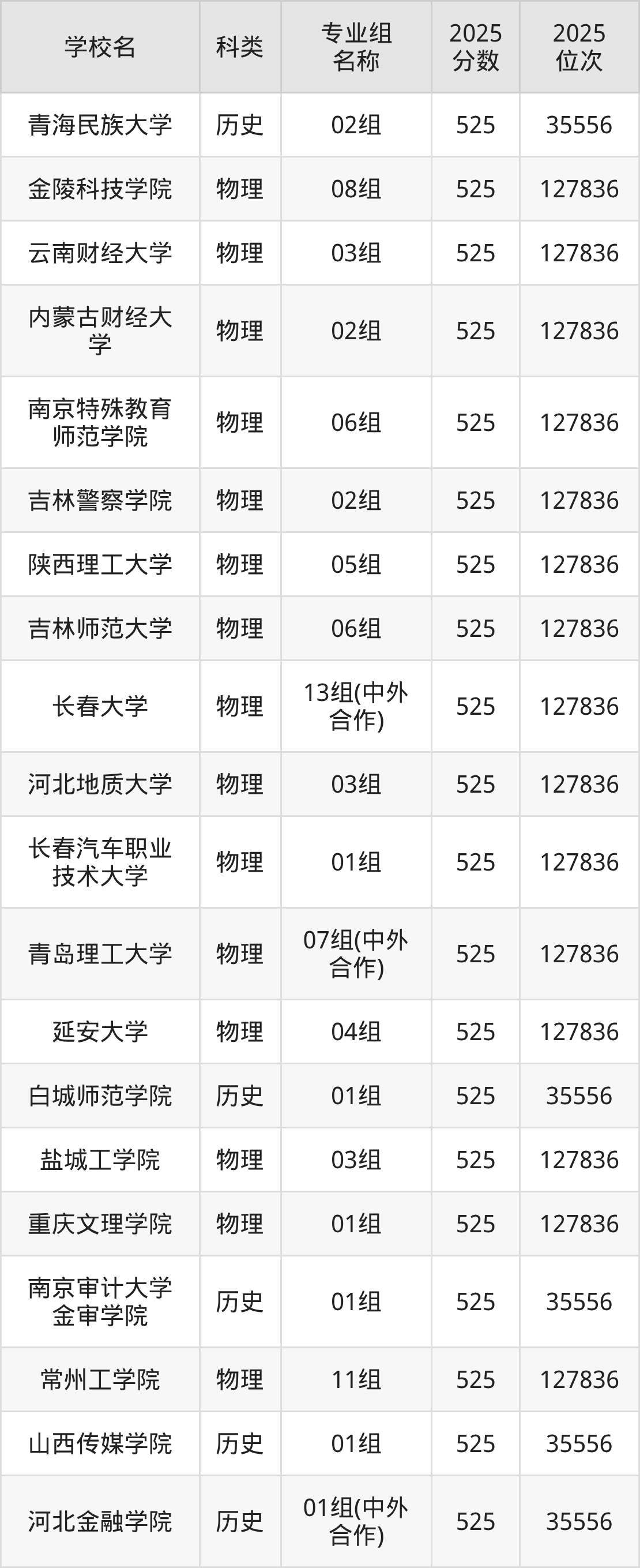 除上述院校外,525分可上的公办二本大学还有吉林工程技术师范学院(第003组415分,位次63704名)、广东海洋大学(第003组500分,位次32203名)。