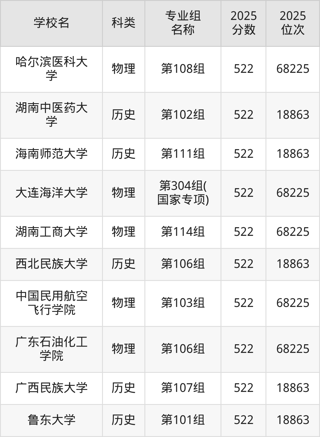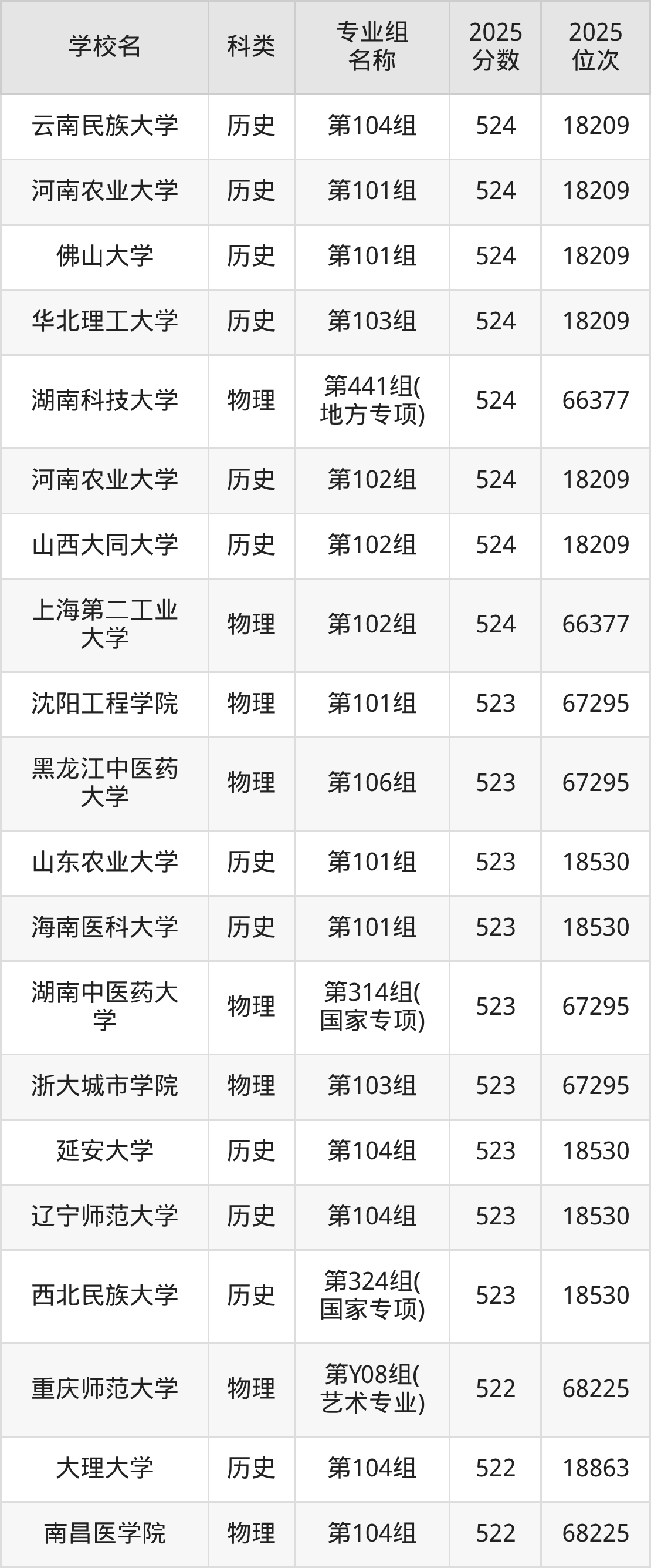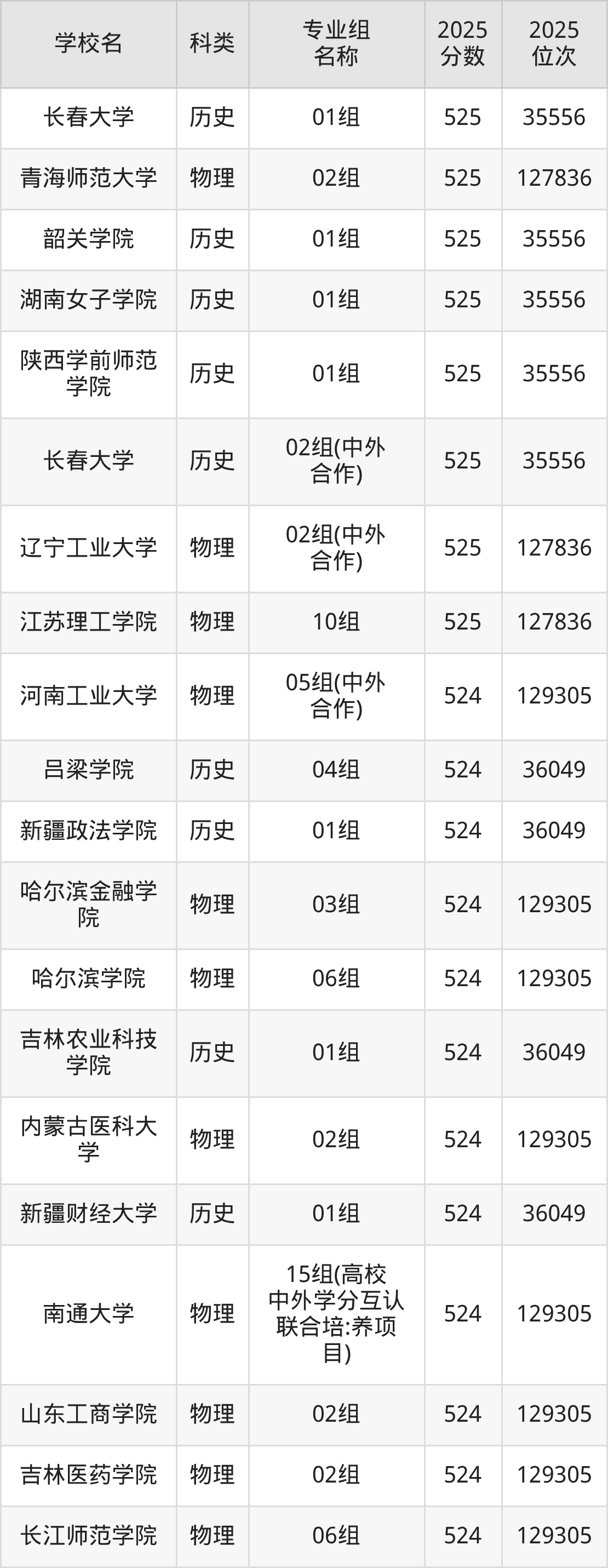 2025年湖南物理类本科线为405分,525分能上的二本大学共计502所,其中公办大学录取位次排名最低的是桂林医科大学(第215组(中外合作)406分,位次210303名),即代表考生省排名位次在210303名及以内就可以报考公办本科。