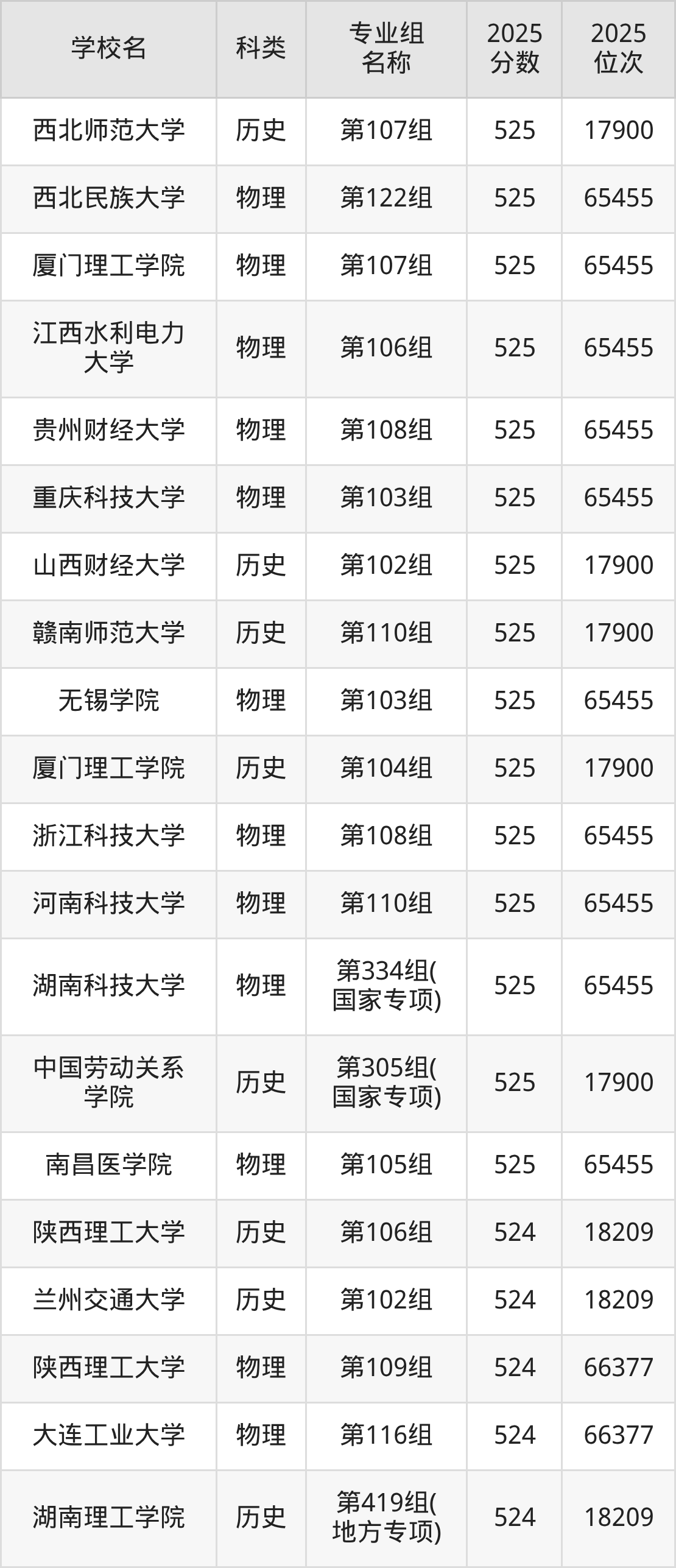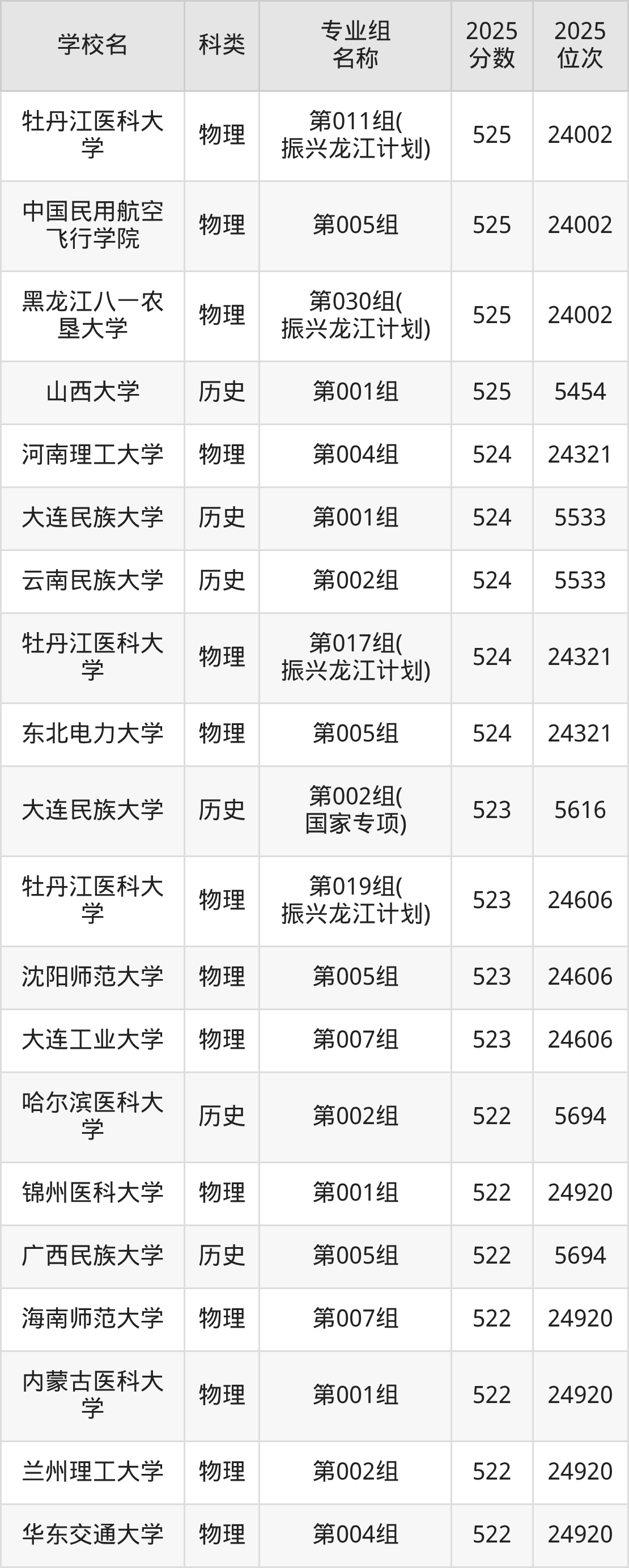 2025年黑龙江历史类本科线为405分,525分能上的二本大学共计383所,其中最低分公办院校为湖南科技大学(第001组405分),对应最低位次为22977名。因此想上公办本科的考生省排名位次至少要在22977名以内。