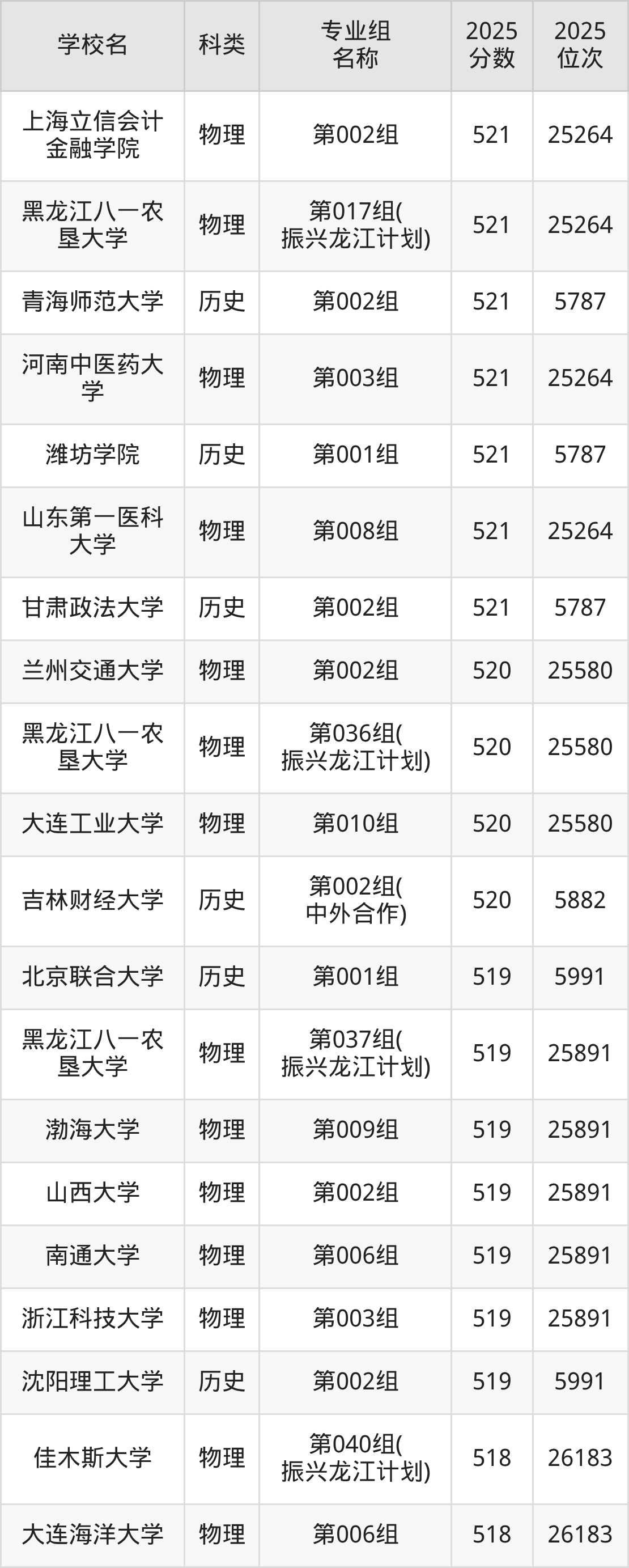 三、黑龙江525分能上的二本大学排名表