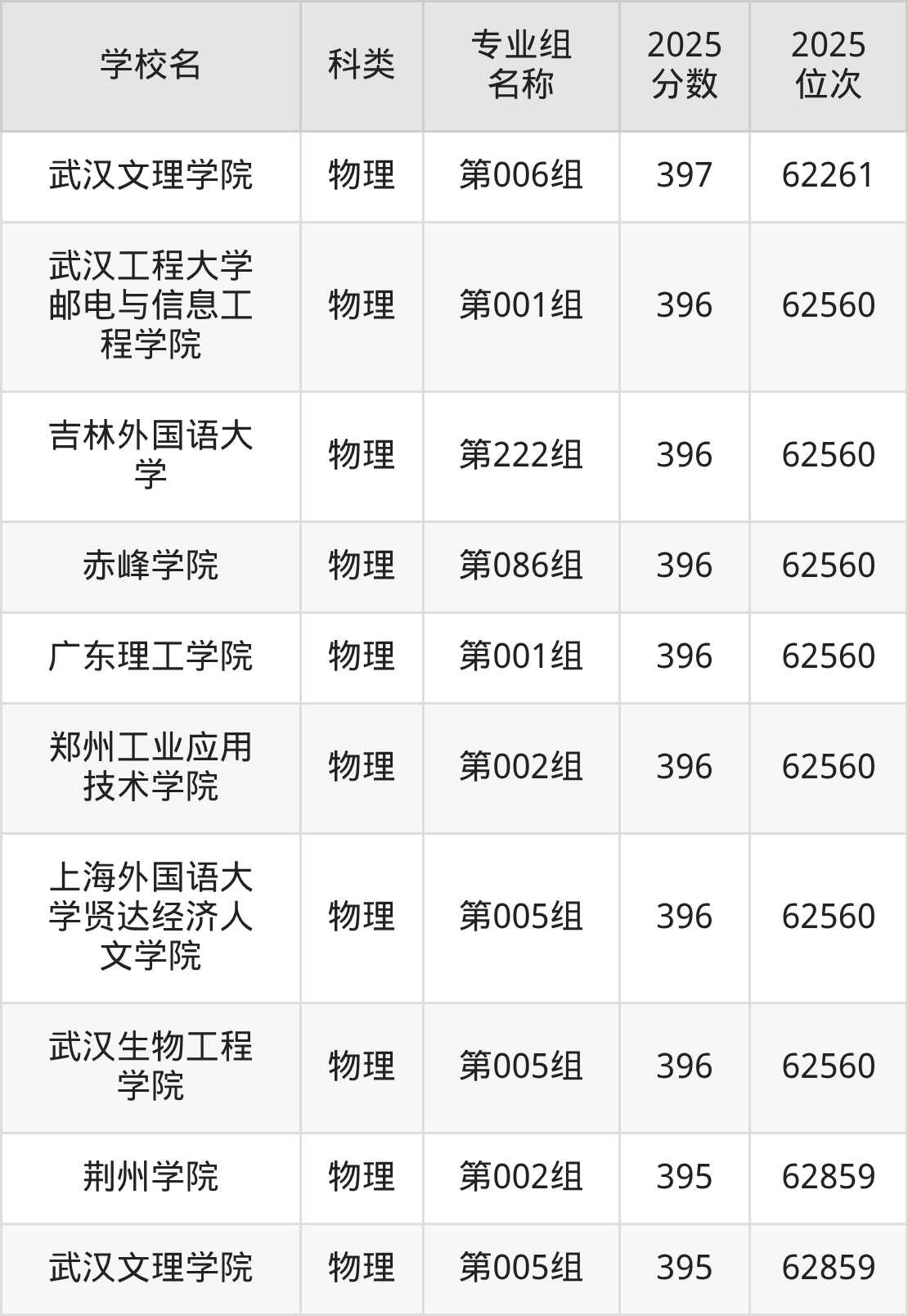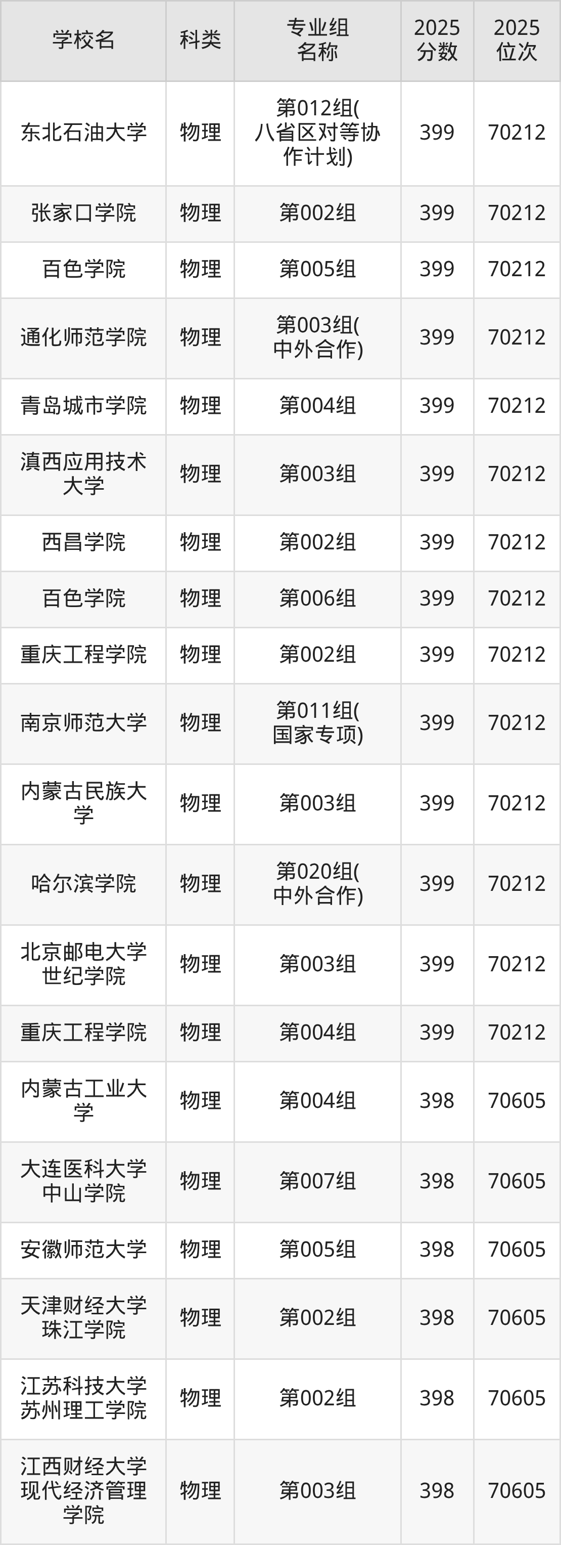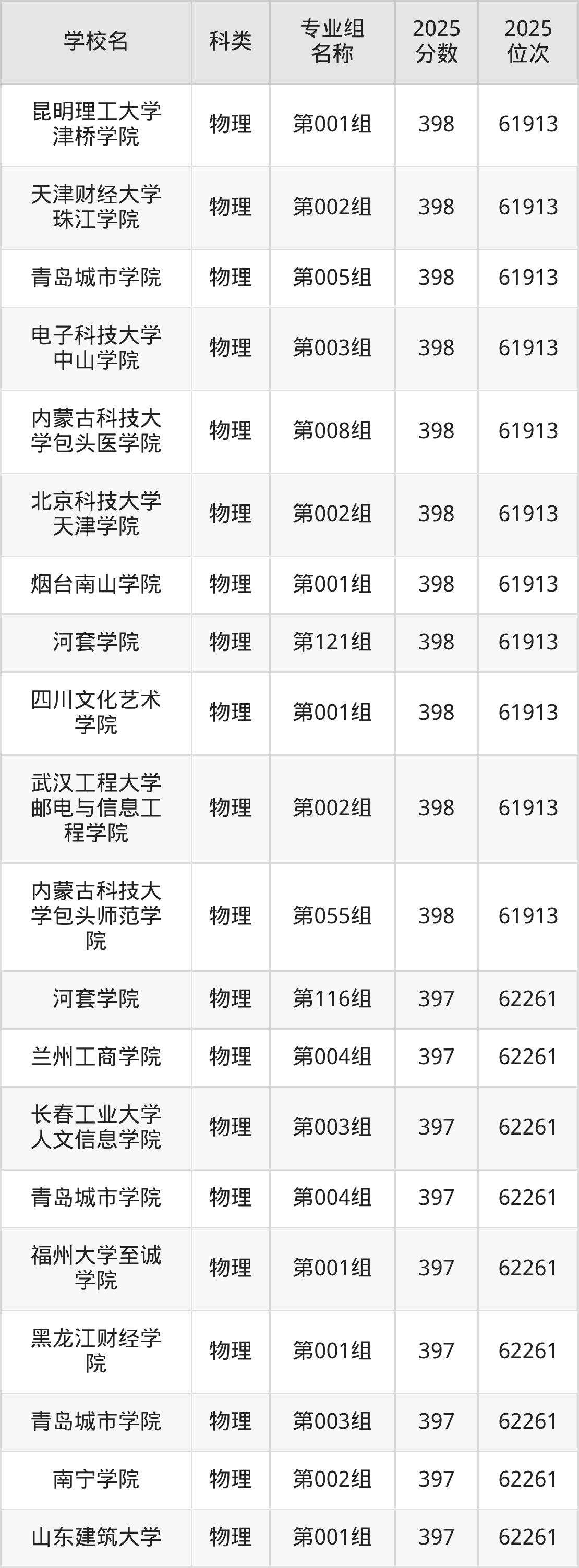 除上述院校外,400分可上的公办本科大学还有山东建筑大学(第001组397分,位次62261名)、江西理工大学(第003组392分,位次63748名)。