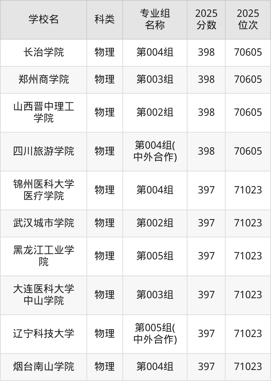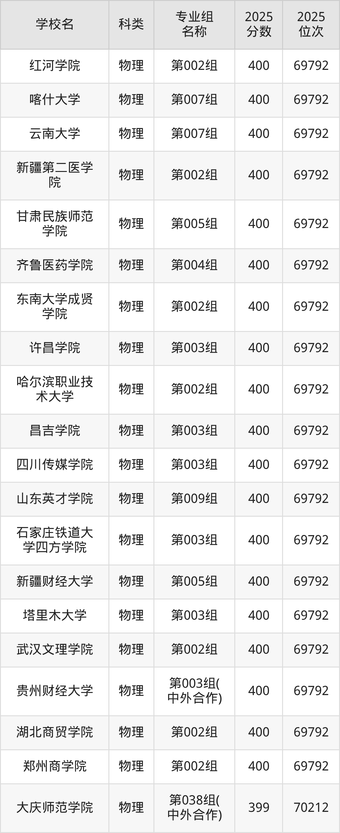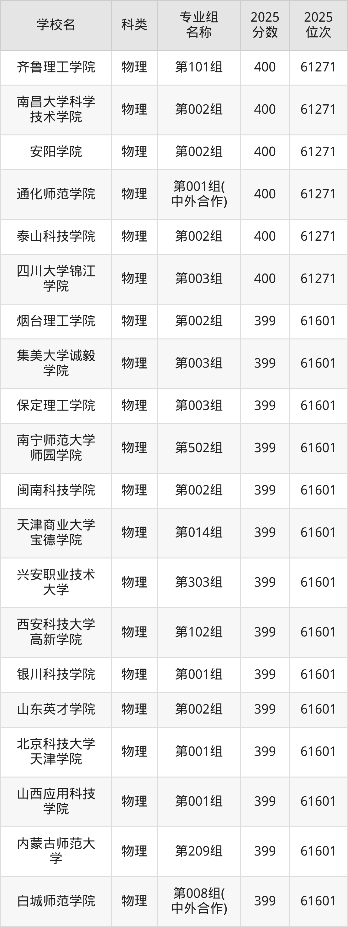 除上述院校外,400分可上的公办本科大学还有山东建筑大学(第001组397分,位次62261名)、江西理工大学(第003组392分,位次63748名)。
